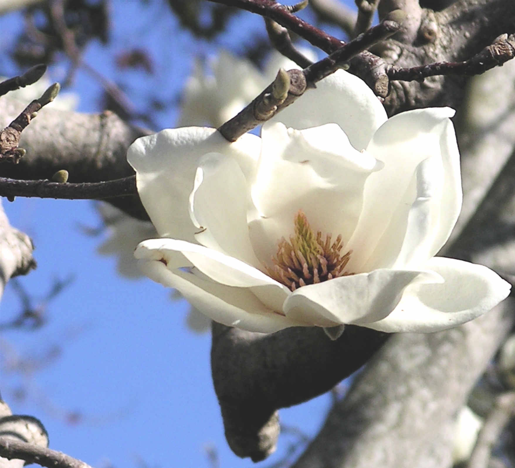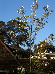 I went out blossom hunting because I knew the rain was coming at the end of the week. I  gave up and I stopped to take photos of the bear fountain shinning in the afternoon sun(tomorrows post) and there was a magnolia in all her glory right where I parked.  As I ooed and awed and clicked away the home owner came outside to join me. Fortunately he was proud of his beautiful tree. He even told me how he brought it from his previous house then gladly  explained that it was blooming early since there has been so much sunshine this winter. I hope to go back to visit her in the misty rain soon.