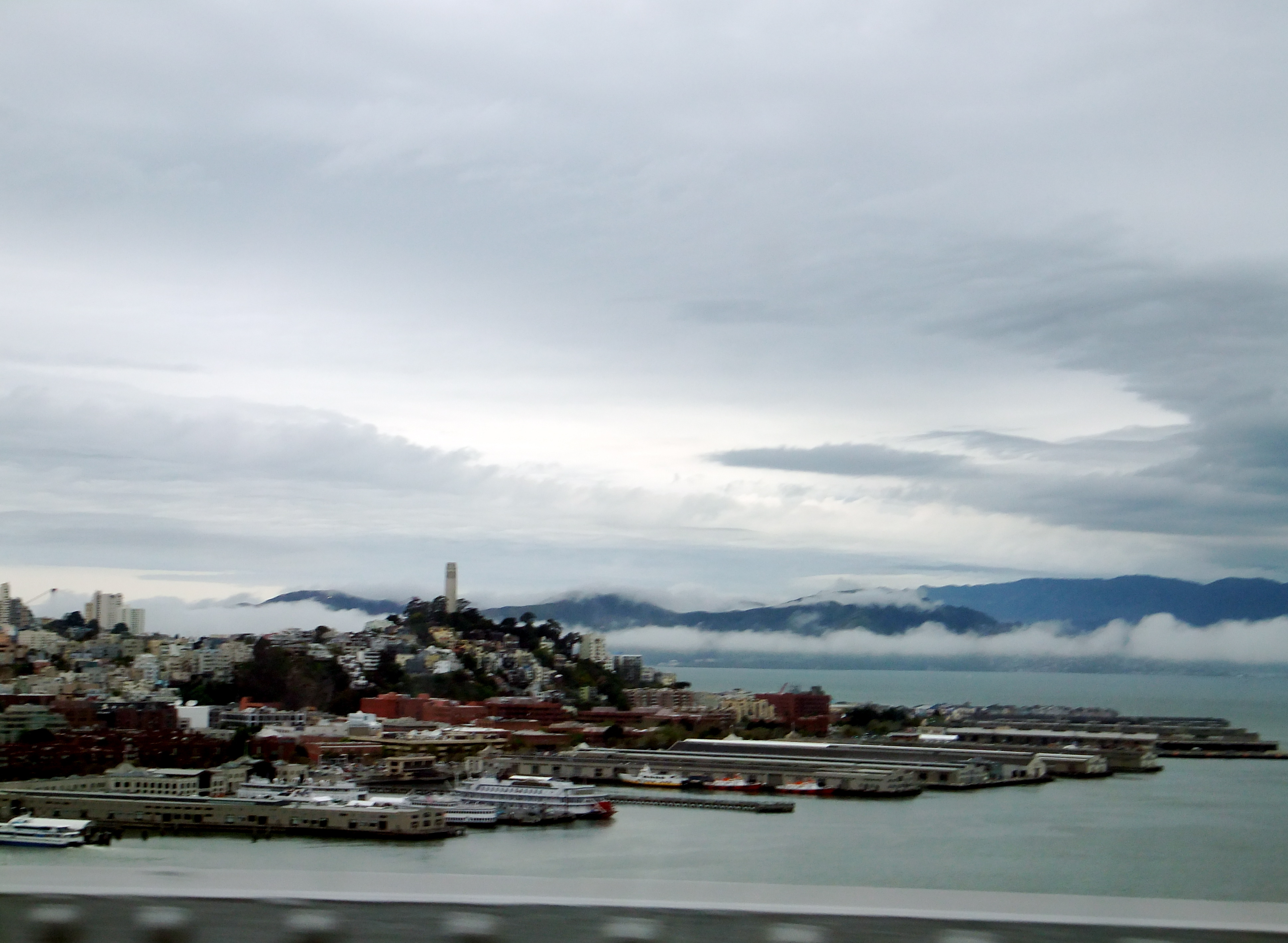 Clouds creep under the Golden Gate just before..