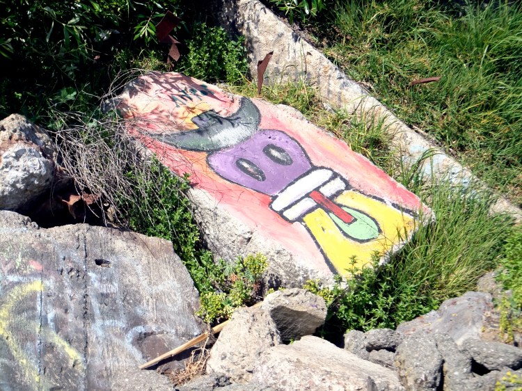 As I walk along the East Bay Shoreline I often wonder are these images graffiti or pictographic art . Does it matter? Perhaps they represent our own wild human nature’s urge to become one with wild untamed nature.