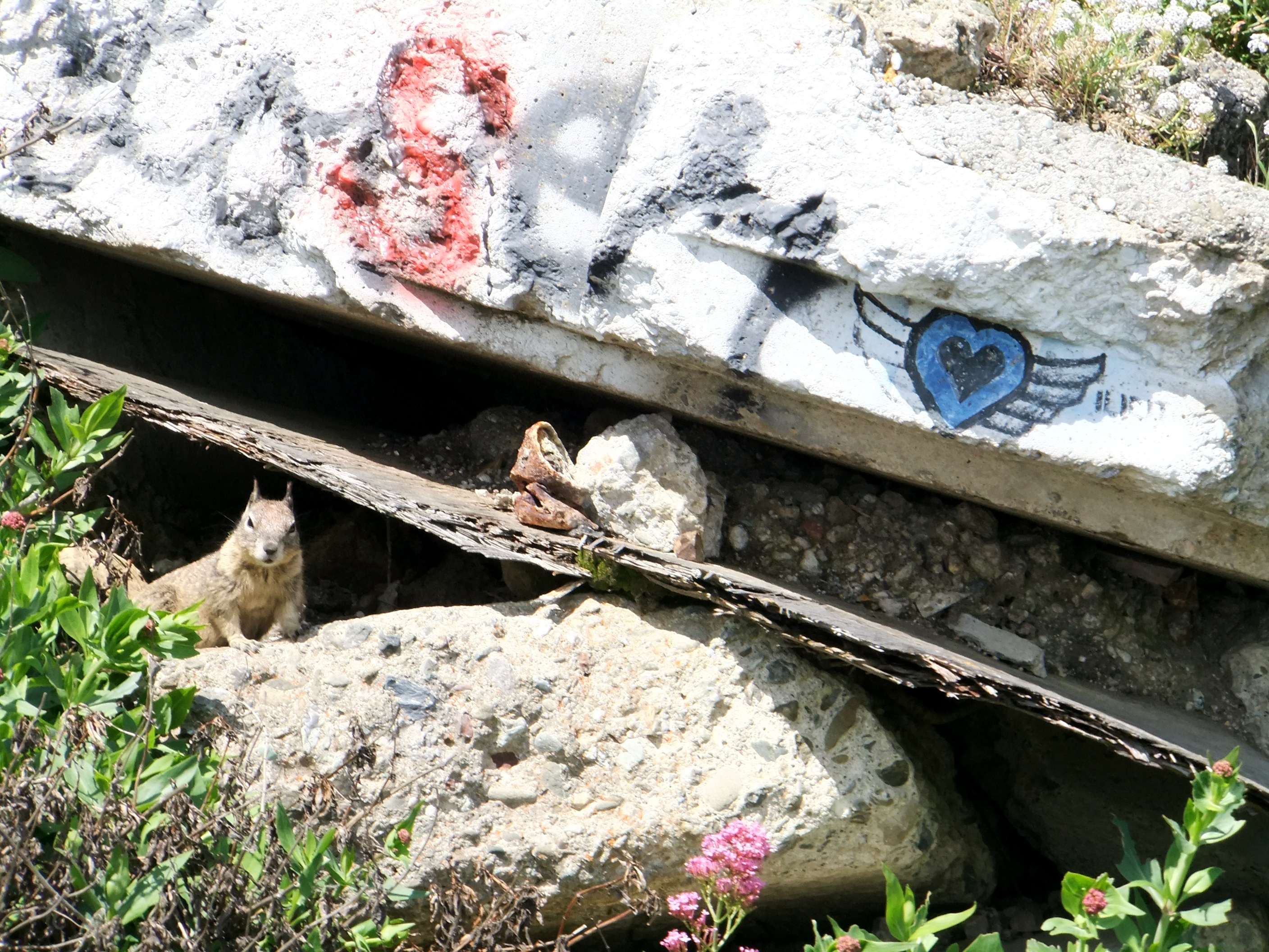 Photo taken at near  San Francisco’s  East Bay Shoreline Park where graffiti artist and ground squirrels freely roam and mingle.