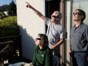 2. Did you notice double shadows? We were at Goleta Beach (near UCSB) enjoying the crescent shapes like you–my hand shadow looked like I Wolverine-like nails. We got a brief look at the eclipse through someone’s welding mask. We didn’t really notice a darkening and lightening of the sky. – Ann