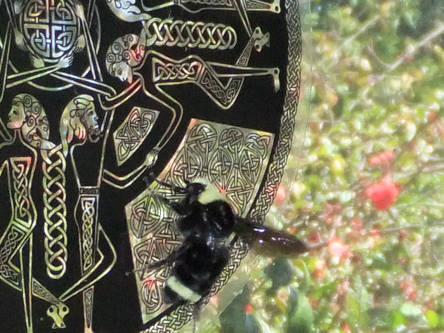Fresh from the hive this bee is enjoying the intricate pattern of a Celtic knot. He creates his own design in the hive. Perhaps this skill was learned from the Planet Venus which makes a five pointed star pattern as she rotates around the Sun and crosses the path of the Earth.
