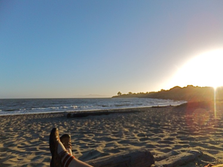 In Northern California it’s almost always cold at the beach so we dress warmly. And I did choose this photo for the irony of shoes at the beach. nuff said… I keep thinking about how well you put everything together for this piece 🙂