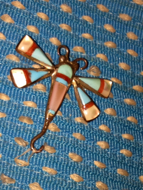 The Zuni fetish Dragonfly that lives on my hat year round.