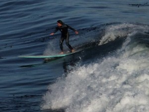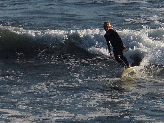 1. They surf all year round in Santa Cruz thanks to wet suits. We get a little color mostly yellow from ginkgo trees and aspen trees. I miss the red and orange.