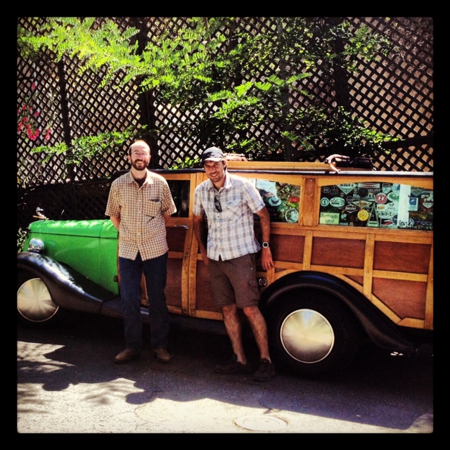 Our Brazilian Student Student Anderson and another friend Ed in front of what appears to be a Rolls Royce Woody.  I know my car guy, dad would have loved to admire this piece of machinery.