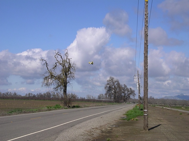 It’s hard to miss this little yellow crop duster but it took a few runs before I could capture this photo. Note Sutter Buttes over to the right. It was a great sky day fallowing a storm.