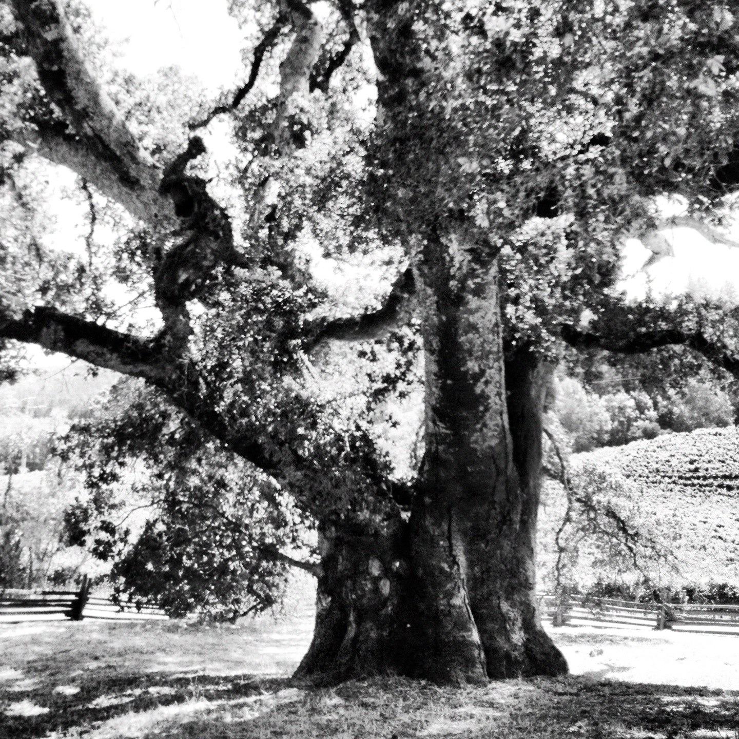 I took this picture of 300 or 400 year old tree that stands next to Jack London’s house last summer and enhanced it into a black and white and posted it.. Recently it has come to our attention that the tree is in danger because of a fungus, so I think is time to re post them and pass on the story of the next phase of the life a tree that has seen a lot of history.