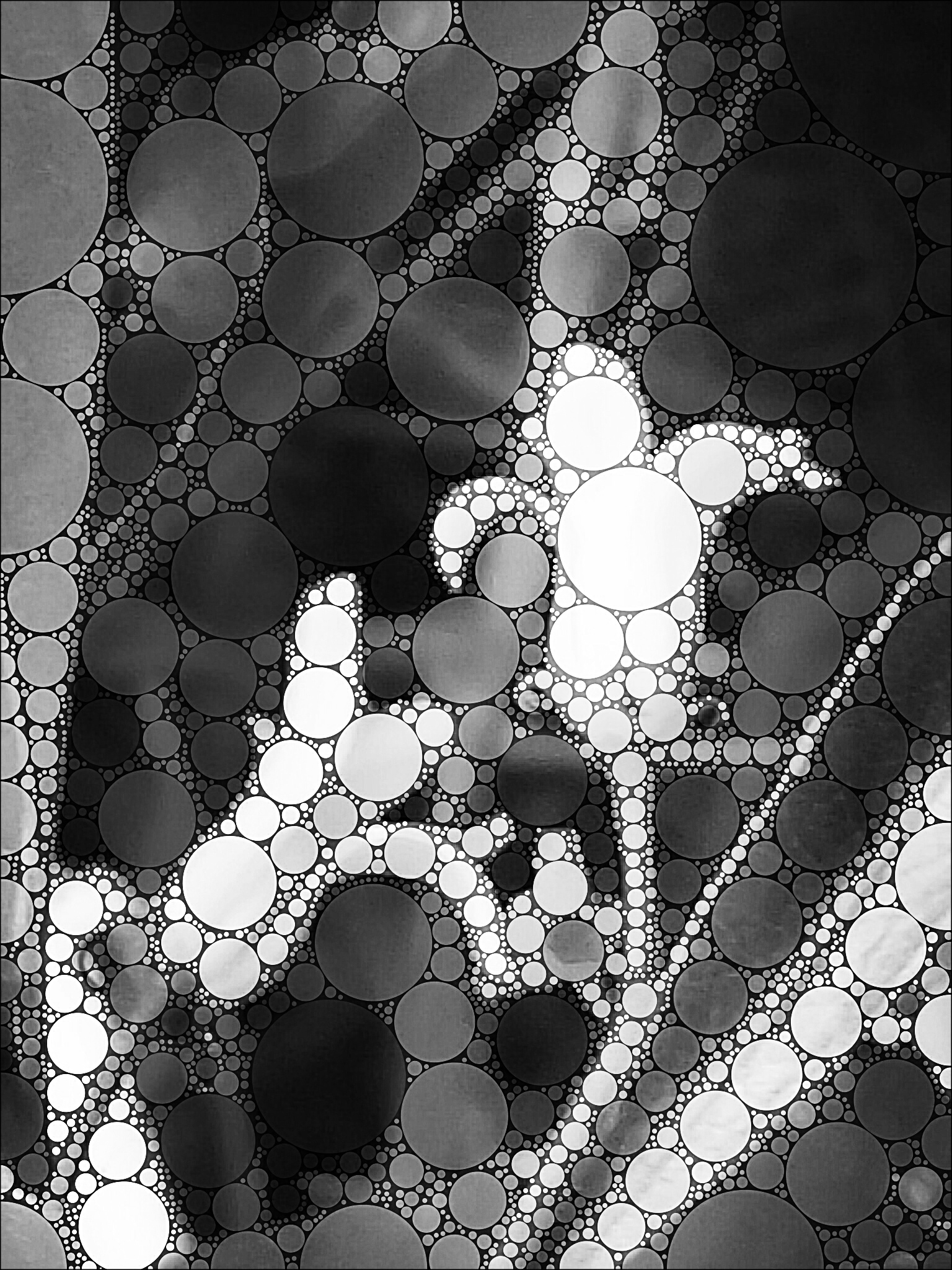 It took a lot a of discipline to post in black and white with all the colors exploding around me. I went to an exciting app to express how I feel about spring! I cropped tiny flowers out of a much larger iPhone photo then added dramatic color in Phototoaster, for the stain glass effect I used Percolator. Finally back to Phototoster for the dramatic B&W.