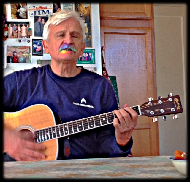 Weekly Photo Challenge asked for split second story. It probably referred to street photography but it was a challenge for me to capture the crystal lit mouth of my friend whose beautiful tenor voice was my filling kitchen.  I had been watching him sing for a while, as the rainbow danced across his face, until I couldn’t help myself and took out my phone and snapped a few shots. This was the first and best split second photo. It is though the crowd on refrigerator door is enjoying it too. Maybe the dancer behind his right ear is whispering the music to him, or at least dancing along. What story do you see?