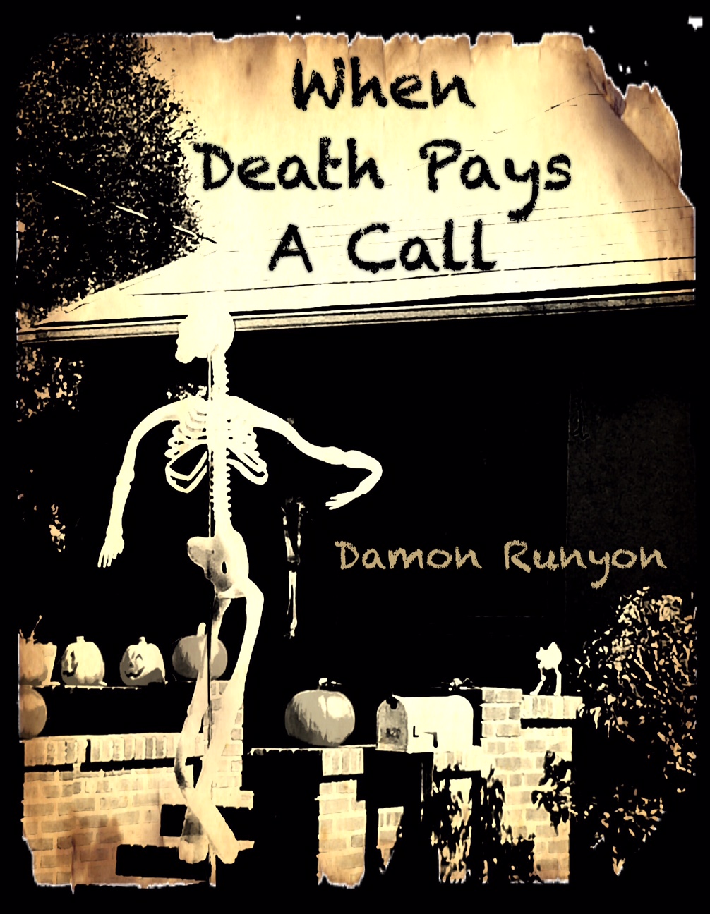 Later in the week you may see this Thin Man (oh that could be another cover) but I couldn’t resist using my Halloween card as cover art for the Weekly Photo Challenge Cover Art. BTW, literary folks, I do know the real title for Damon Runyon’s story is “When Death Pays A Social Call” but I couldn’t get all the words to fit in the space. Maybe I’ll get a better font app in my Tricker or Treat bag. 🙂