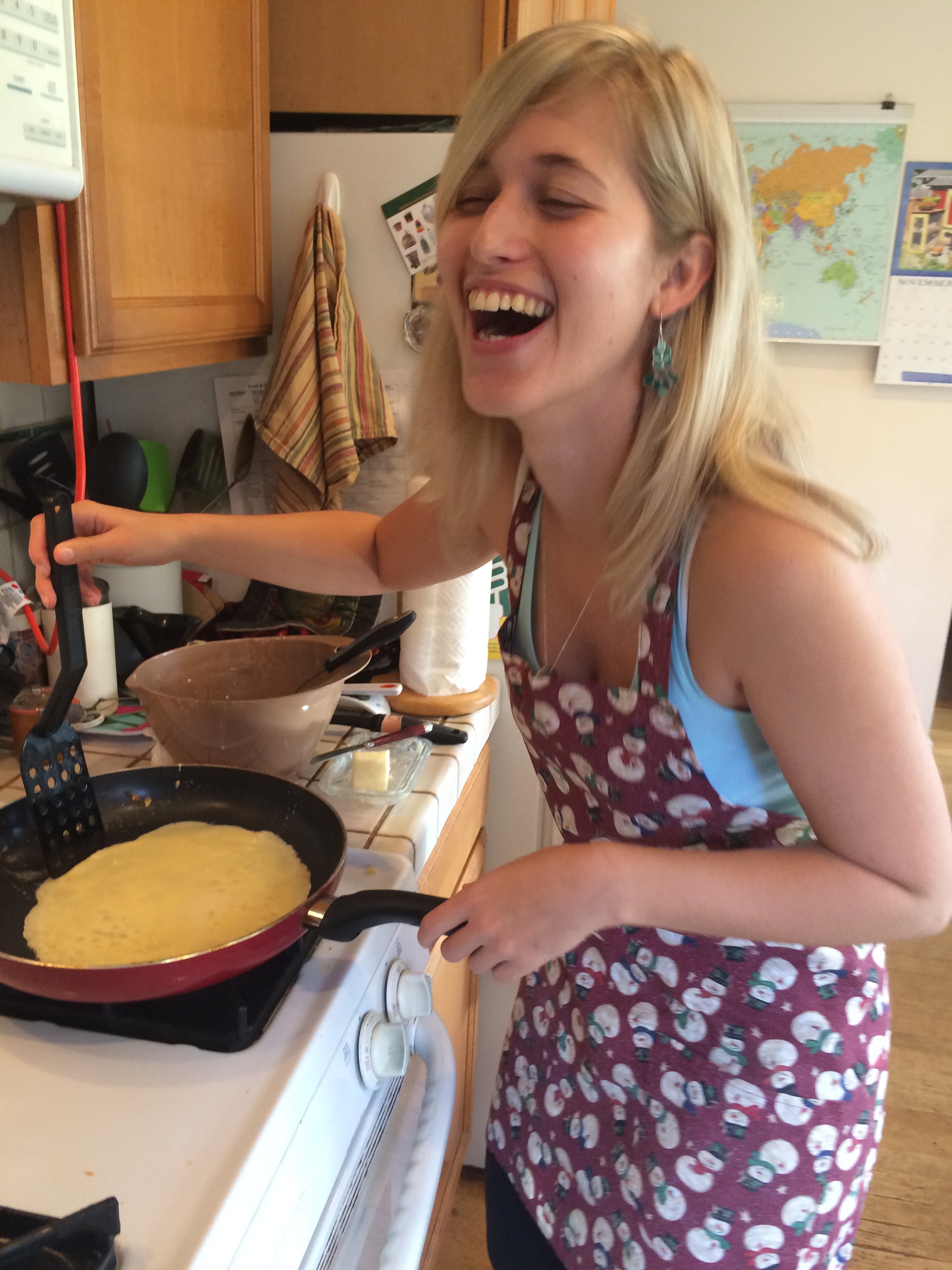Besides all the bent elbows and fingers it was a “joint” effort making these crepes or Czech pancakes.