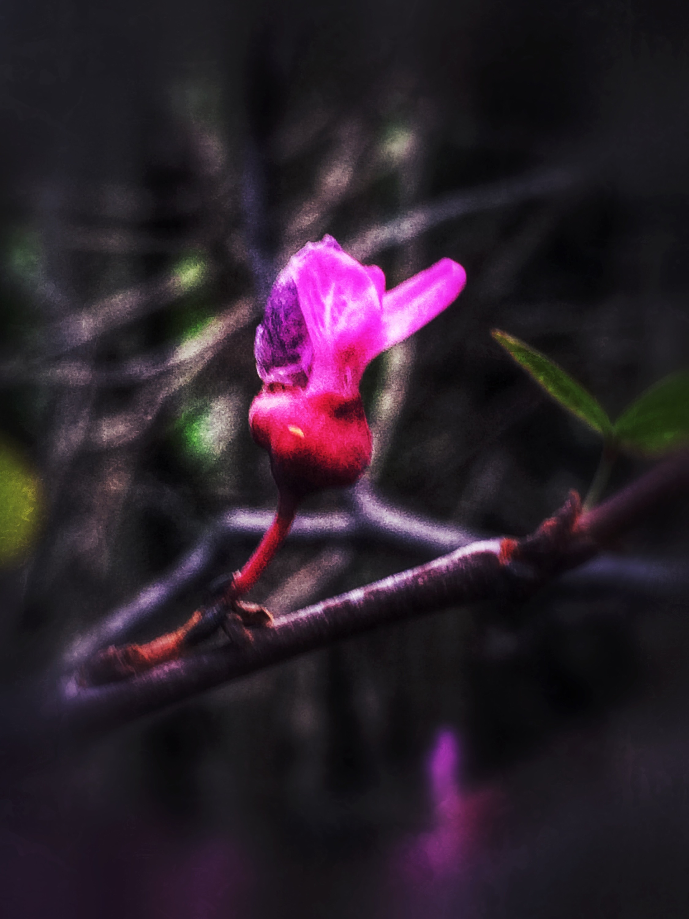 Computer problem?? I’m posting from my iPhone. So what you have here is 2 views of a Redbud flower the size of a pea and an asparagus fern sprout.