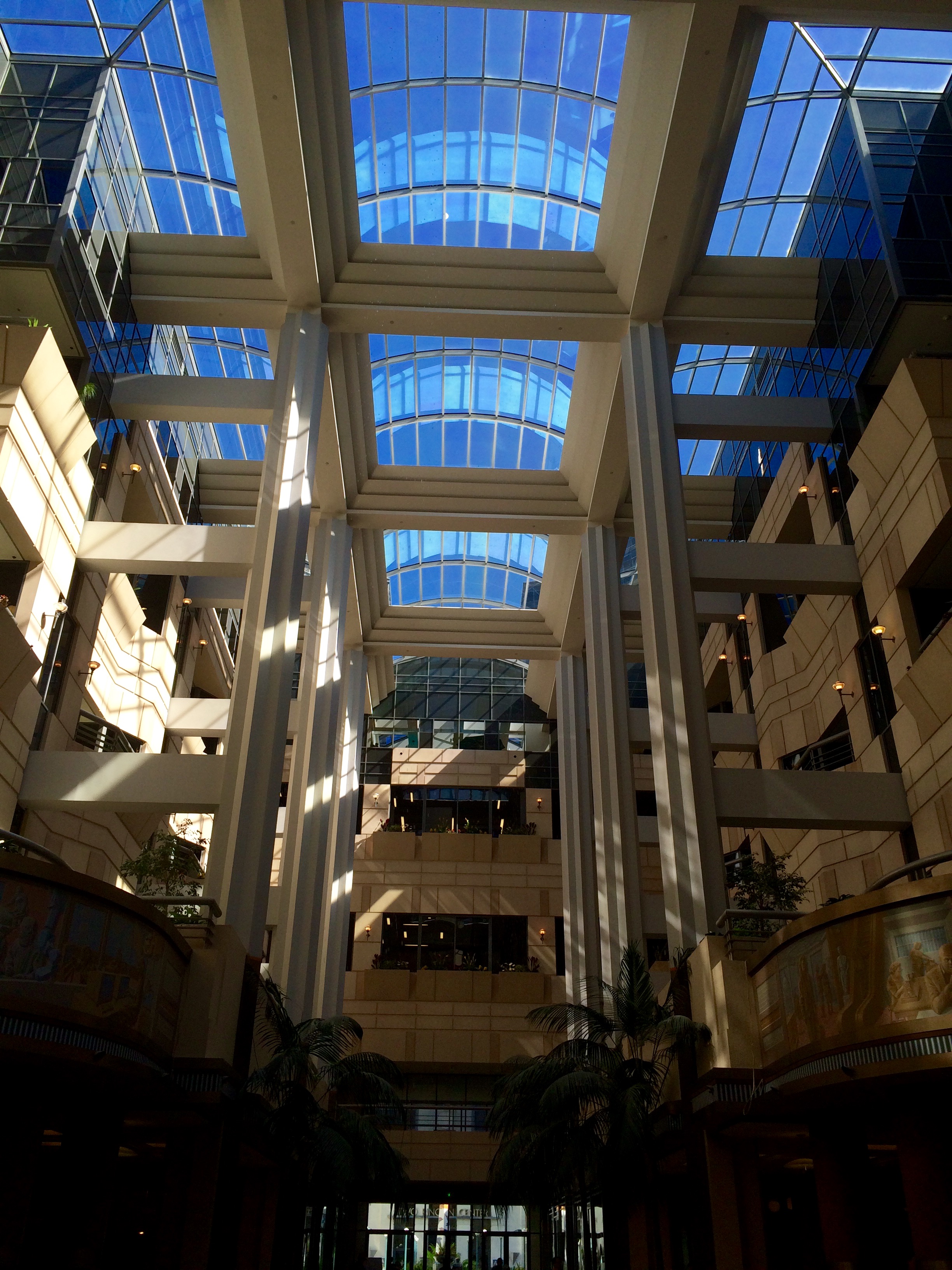 Since my daughter works at this building I come here once in a while and I always become breathlessly overwhelmed by how to capture what it is like to be in this space. I take a few pictures and stop. Fortunately the last time I was there it was mid afternoon on a Friday when it was empty of people and the light just right. I have yet to capture the amazing and strange 4 story indoor waterfall to my satisfaction, but here it is anyway to complete the tour.
