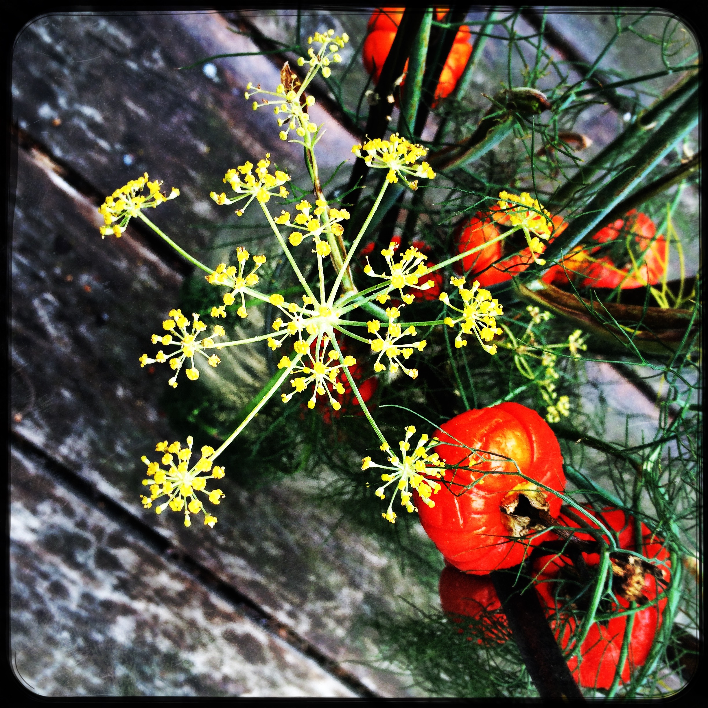 I wanted the sunburst of the anise flowers framed so I shot from overhead.