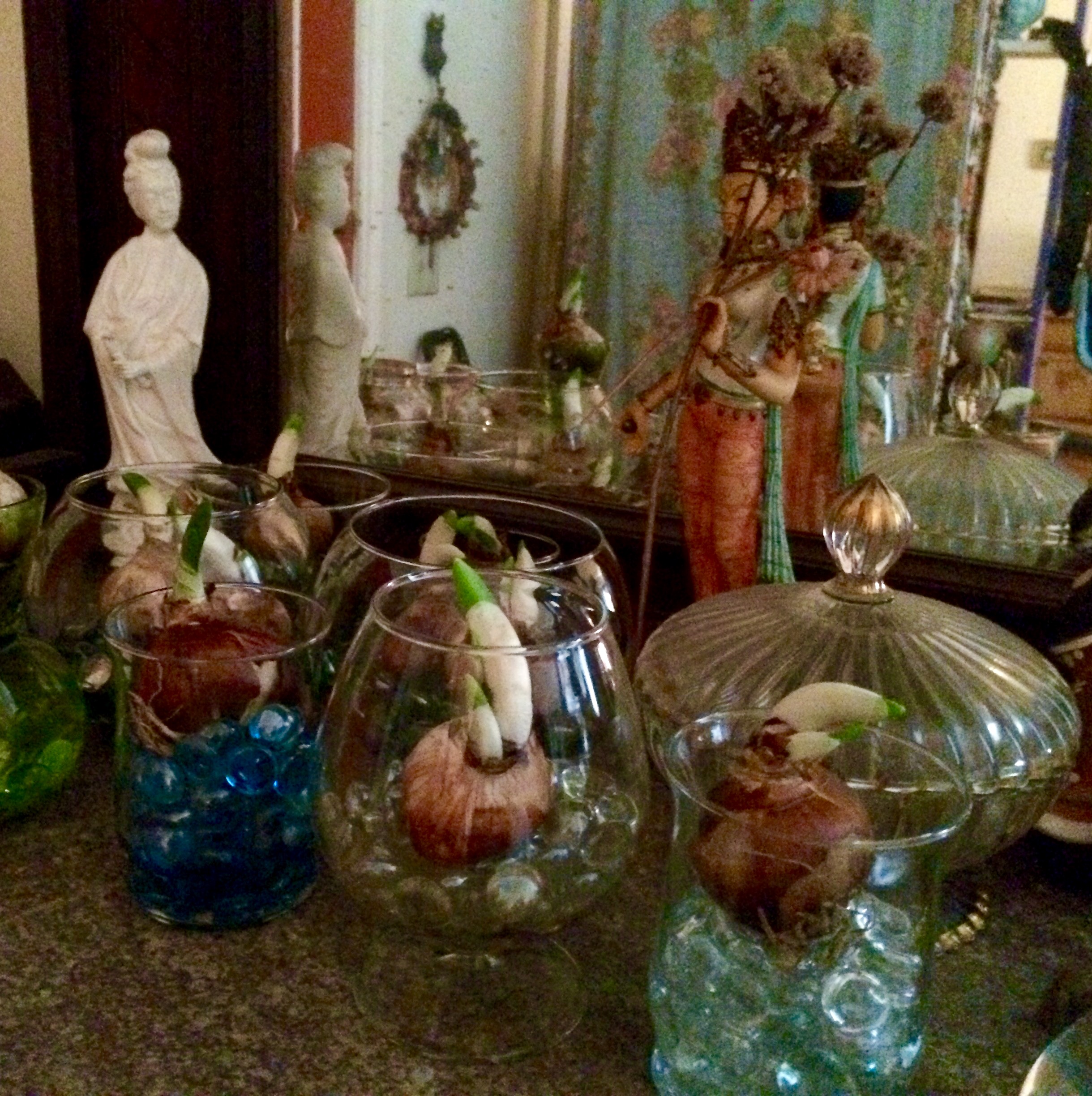 To Force narcissus place bulbs in container with rocks or colored stones fill with water below the bulb, don’t let it touch the bulb, the roots will seek out the water. Put in dark place until the roots and shots begin to grow then bring them out into a warm sunny room to bloom. Enjoy and share!