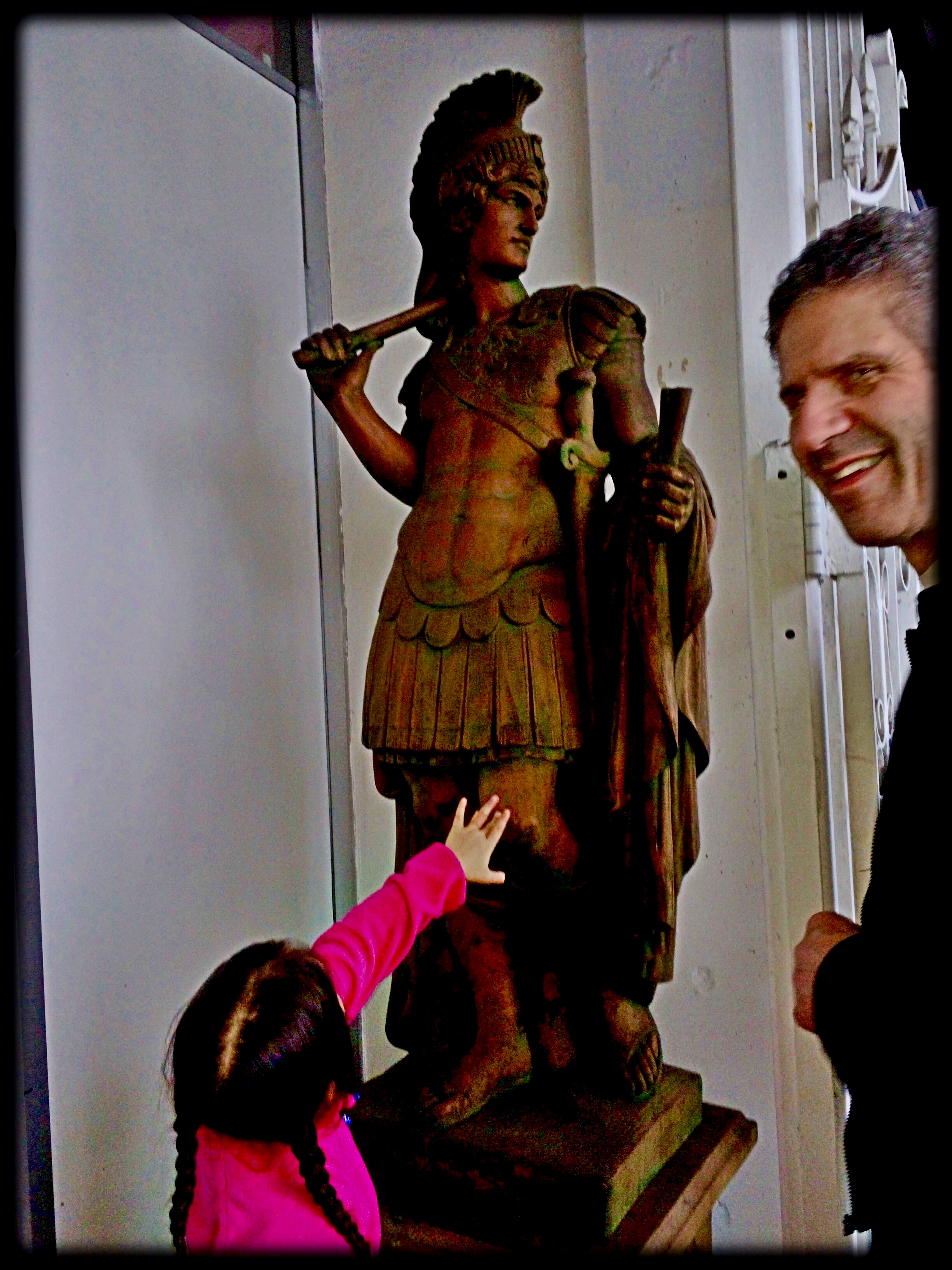 I must walk past this big wooden statue every day and ignore him but on the very day I stopped to take a picture a young lady and her dad stopped too, so I captured this sweet moment…