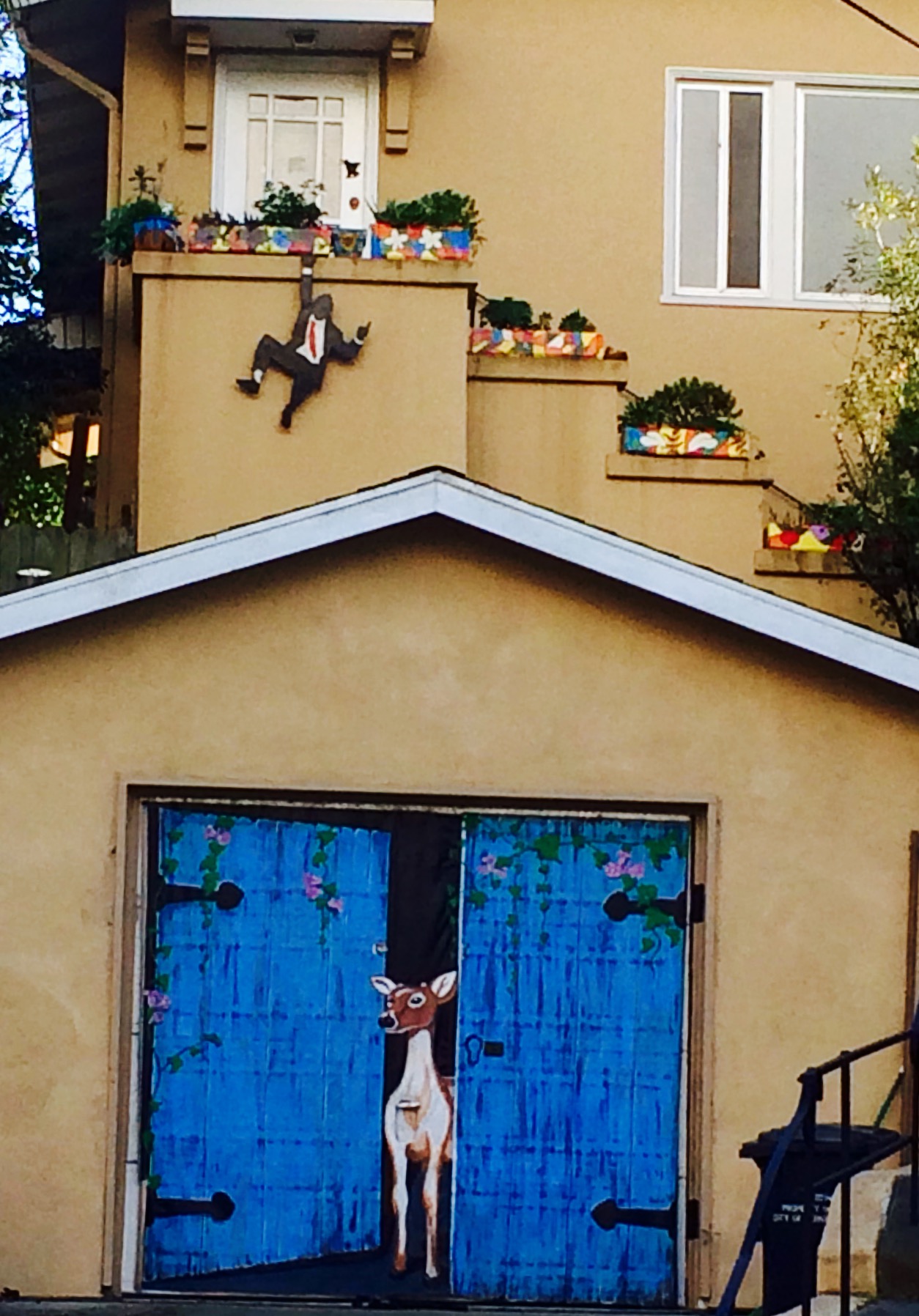 I’ve been trying to capture Bambi here for years. She lives on a very busy street and I only notice here on occasion as I wiz by. This day I was a passenger and we were stopped long enough at a light for me to wipe out my iPhone and shoot 2 shots. Didn’t even notice Don Draper hanging on for “deer” life until later,