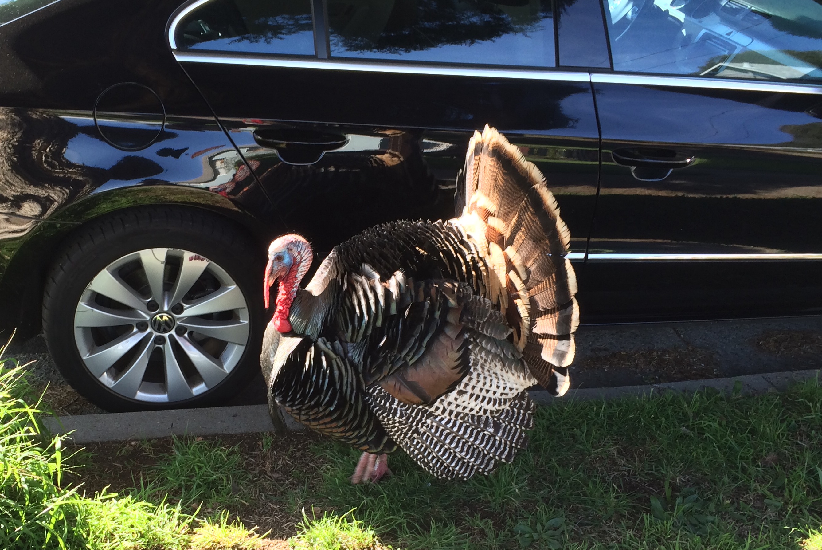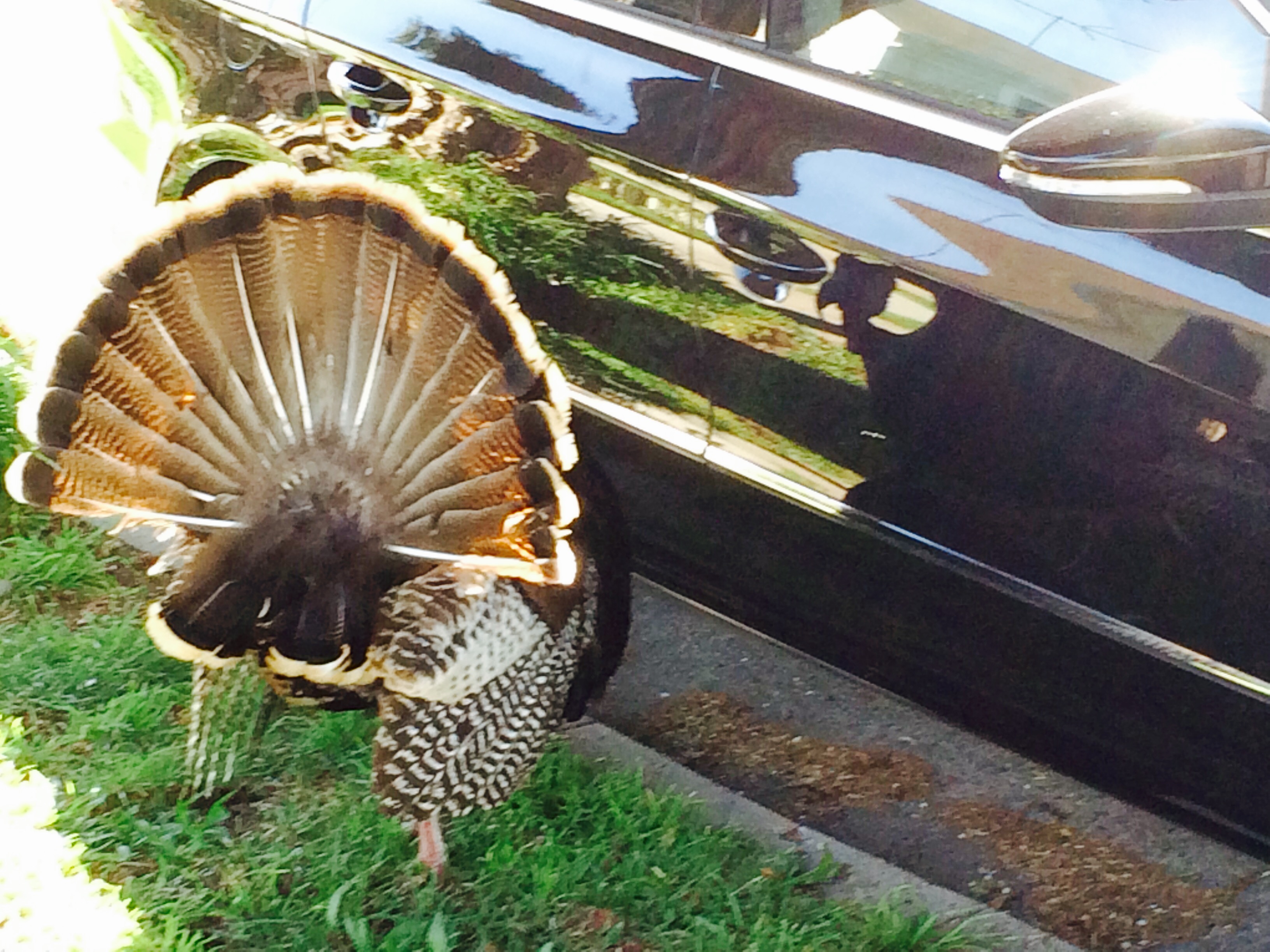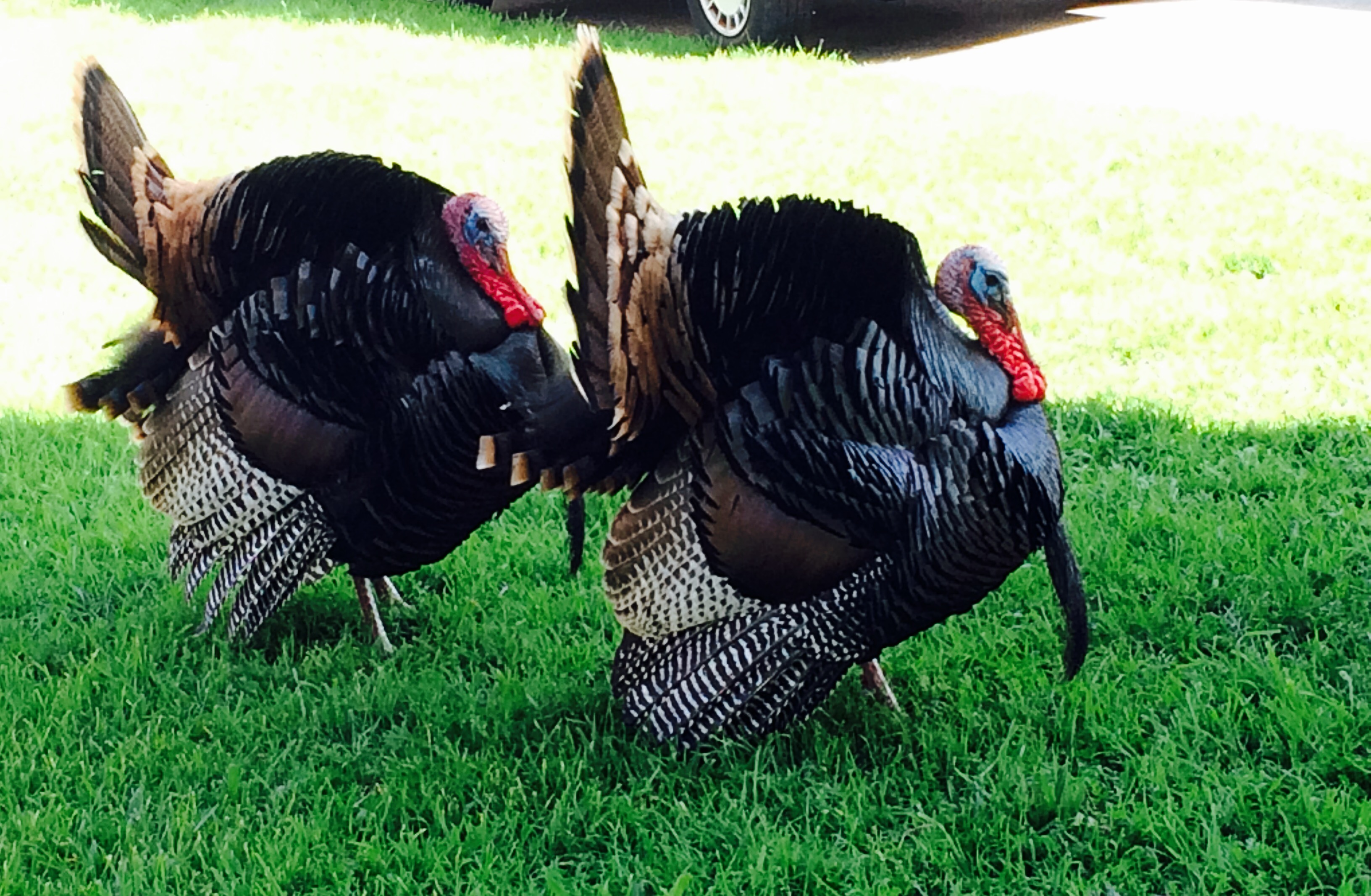 Natural History:We usually associate the big fan-tailed turkeys with November but in nature they grow the fine feathers for spring mating season.These handsome gentleman are parading all over our neighborhood just now. I shot these turkeys (couldn’t help the pun) on the neighbor’s lawn. They were so self-absorbed I walked right up to them with my trusty iPhone (with no backdoor for on it yet) and clicked away. Hope you enjoy them there