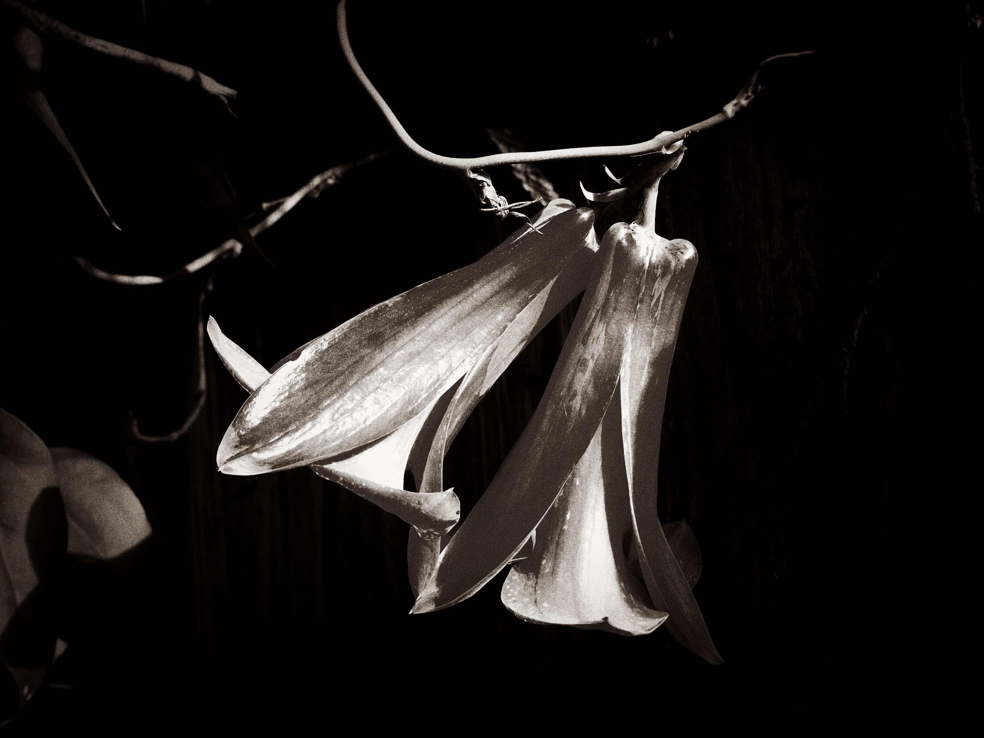 I am drawn to the way the monochrome brings out the architectural features of the blossoms. Have a fun vacation. Happy Photo Challenge.
