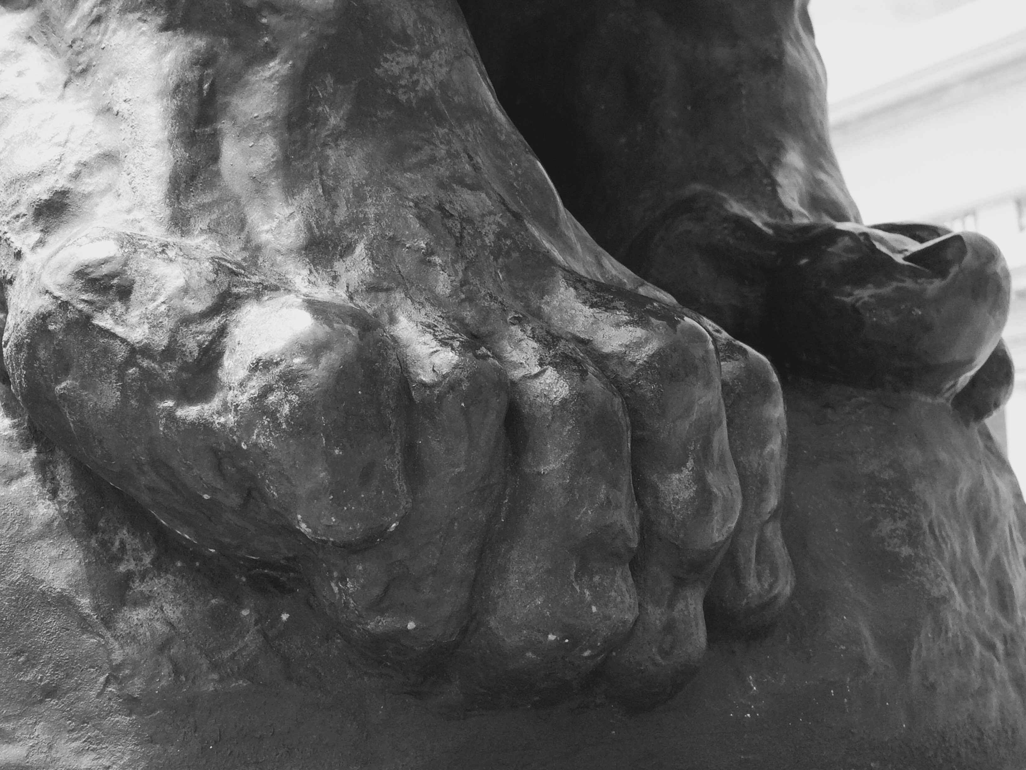 It seems the big toe has been rubbed shiny by people passing by. Probably because the toes are at eye level. I was at The Legion of Honor mid afternoon making photography hard as well as just looking up into the face of Rodin’s Thinker.