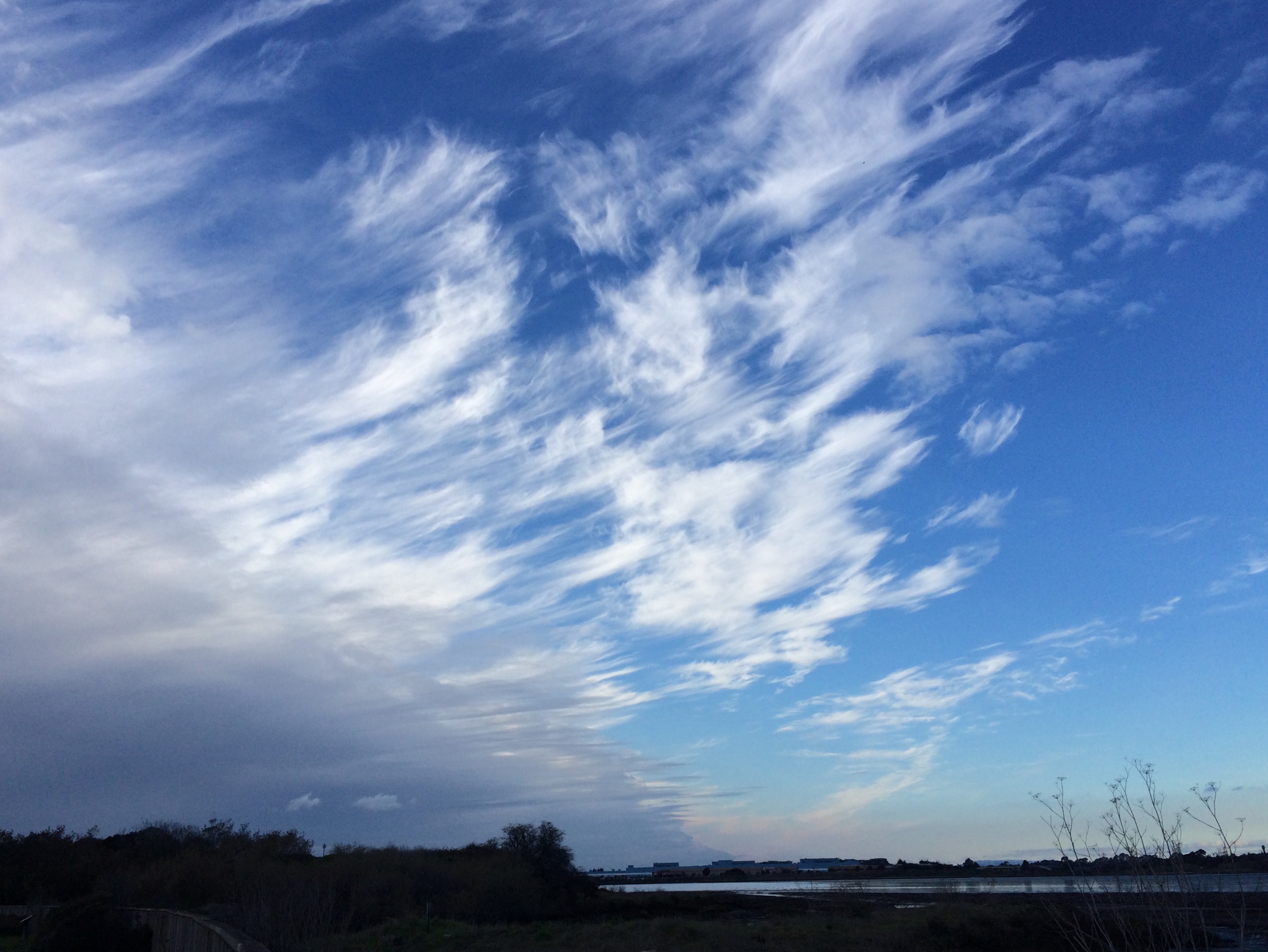 To keep pollution down, in Northern California we have Spare The Air Days, where we are asked to refrain from driving too much or using wood fires in winter.  This is edge of cold front bring in a layer of clouds that causes a Spare The Air Day.