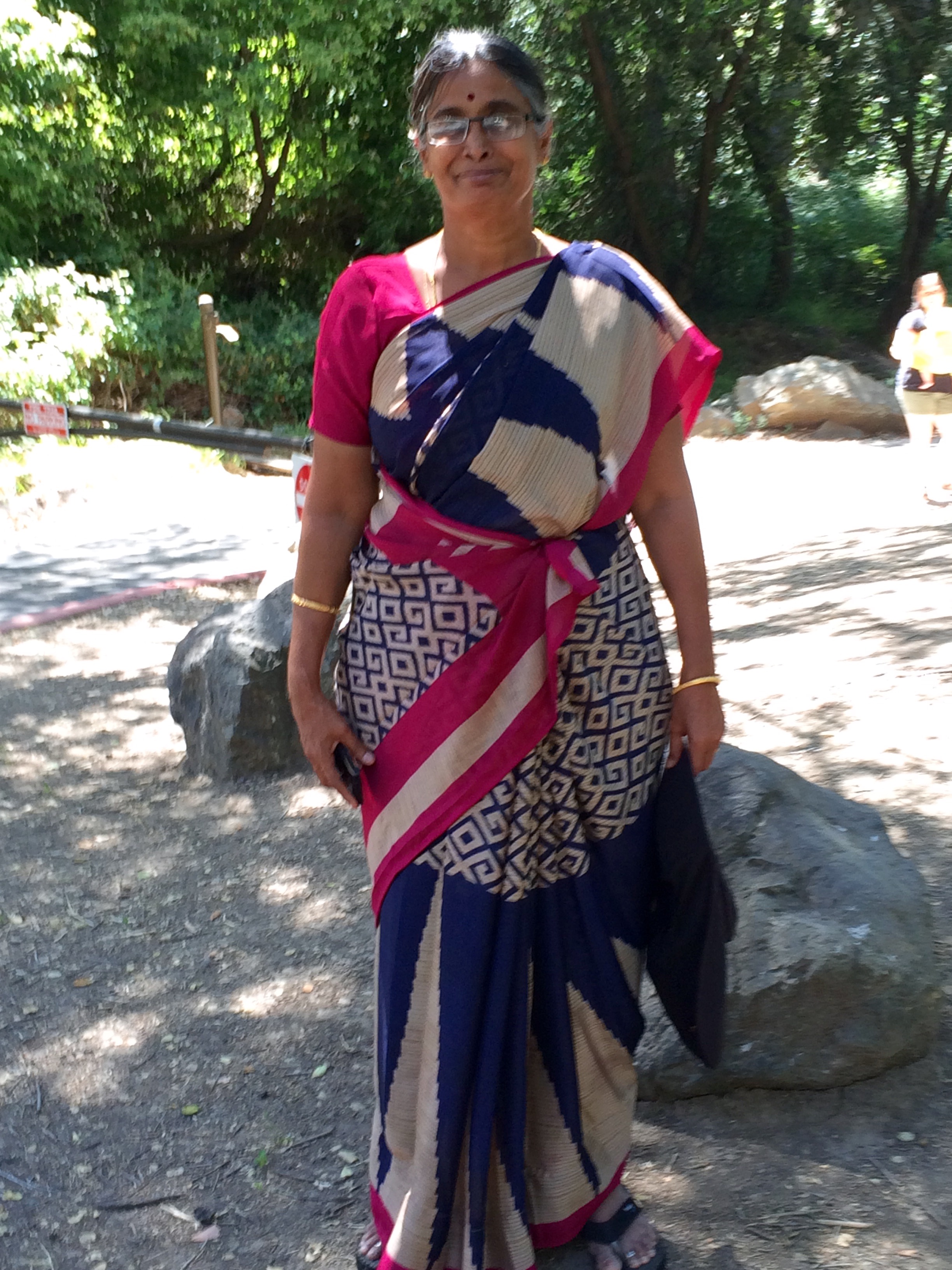 I had never seen a Red White and Blue Sari before. This woman was posing for her husband and gladly posed for me.