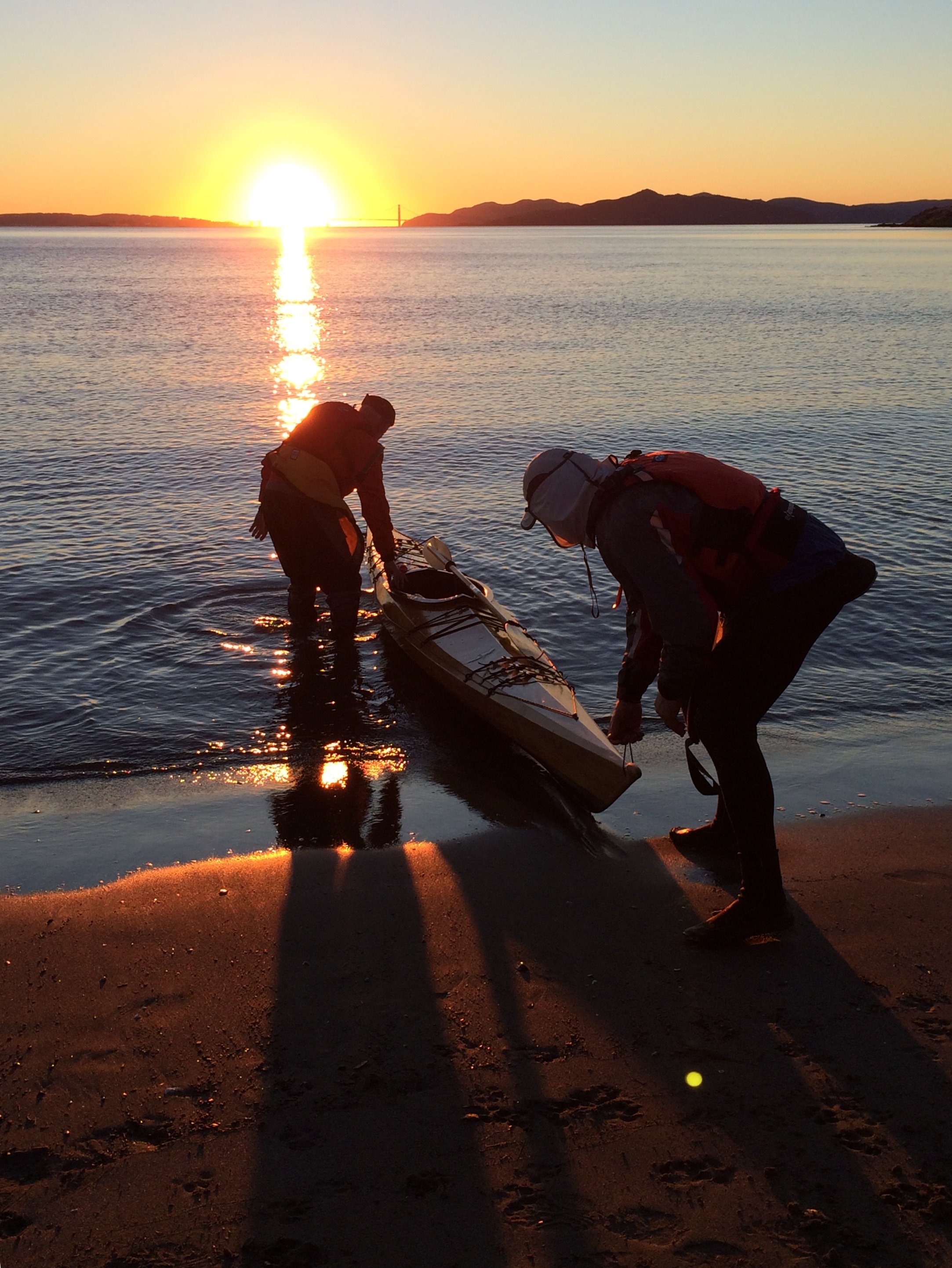 I try to take a photo of New Year sunset through the golden gate every year, this year the kayak coming on shore added a new dimension