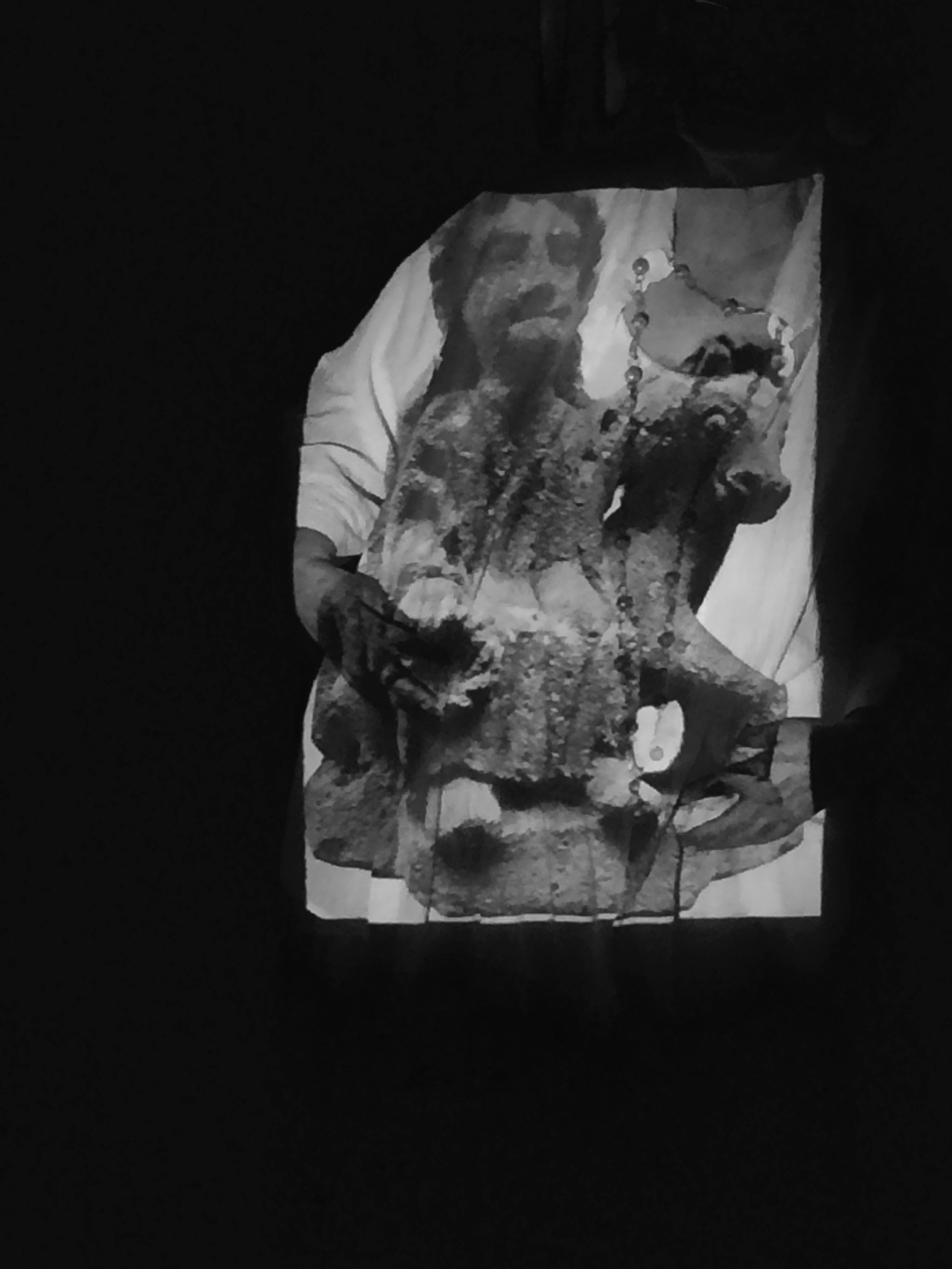 Images of goddesses were projected so people could pose with them as if to become the Goddess. The white clothes they were wearing become the screen and I photographed the results