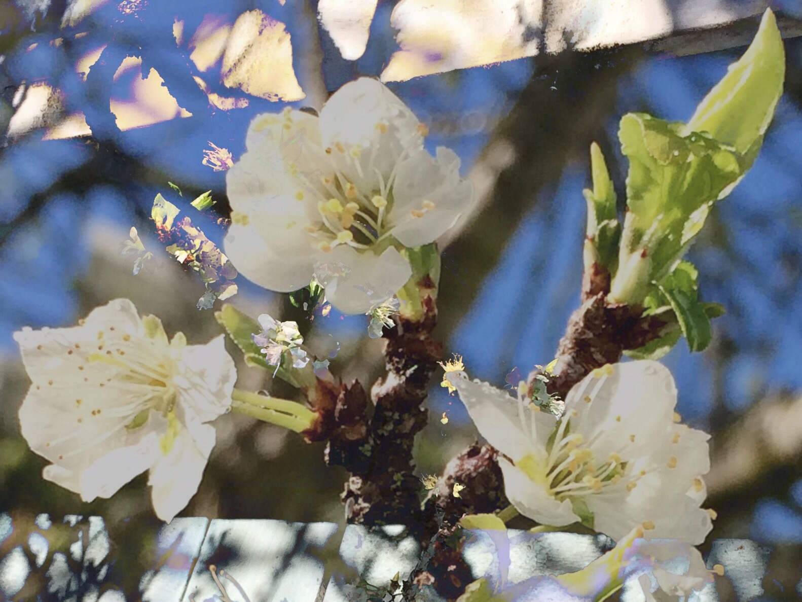 The Santa Rosa plum in my yard finally is blooming While most of the wild flowering trees up in the hills have finished theirs. The first photo expresses my take on the exuberant cacophony this years Spring Awakening.