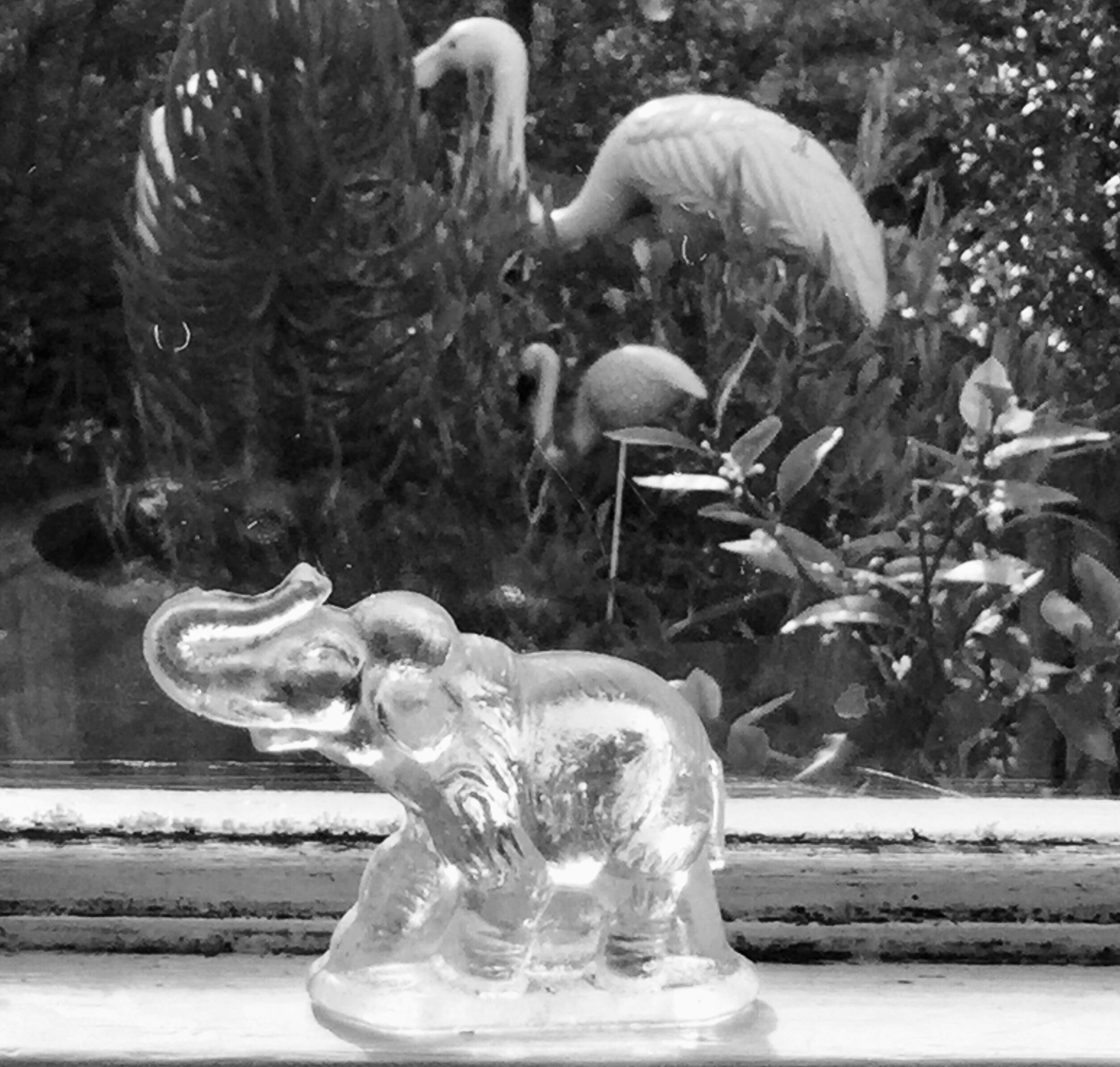 Elephant and flamingos