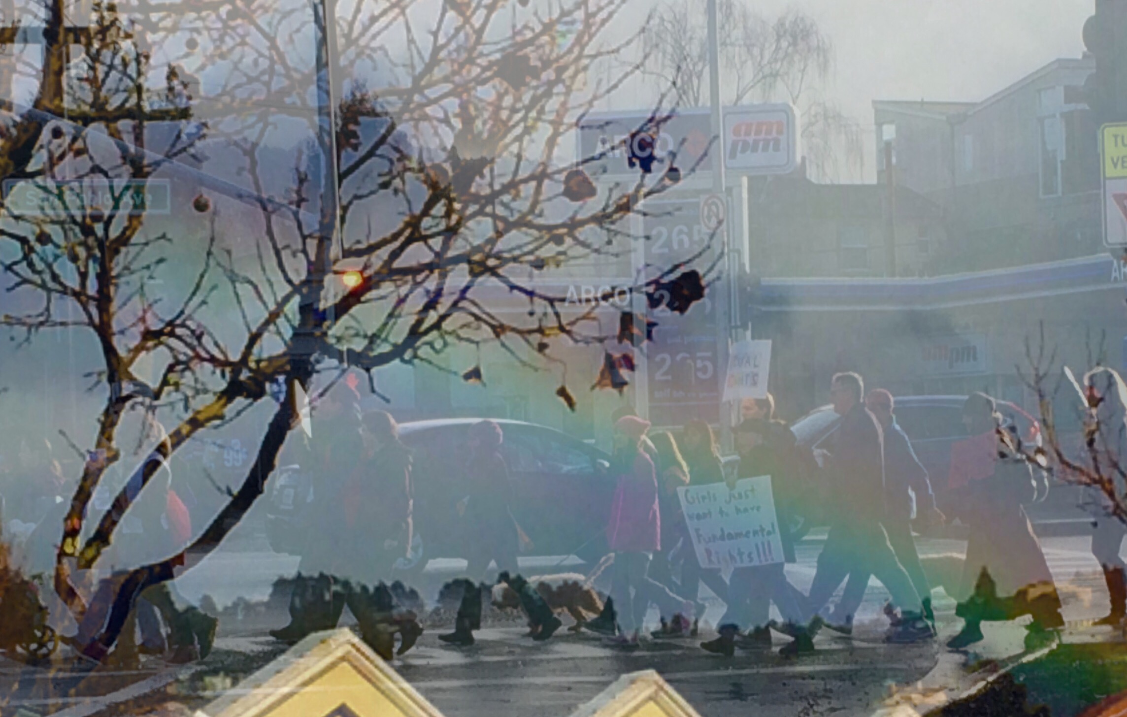 It’s a double exposure that looks like a reflection. I thought the marchers deserved a rainbow…