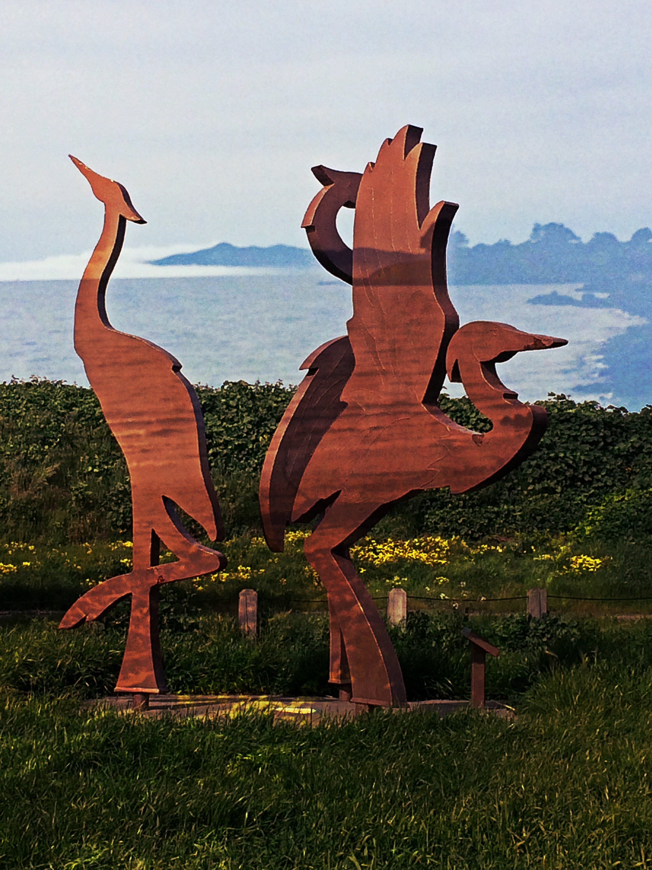 The sculpture is at the turnaround in the parking lot for the Albany shoreline. Here I have moved it to a more appropriate site so it can mirror the bay where the egrets play. I used Pixr to create a double exposure.