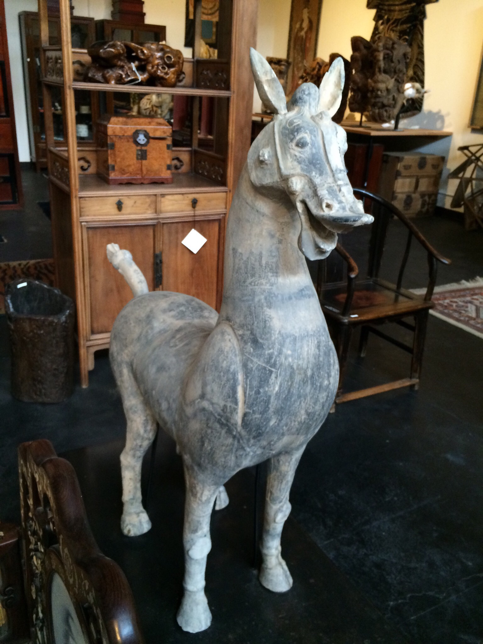 This laughing equine is in an Asian art collection barely a mile from Pixar Sudios so he could actually be where the image came from. Sure makes me smile.