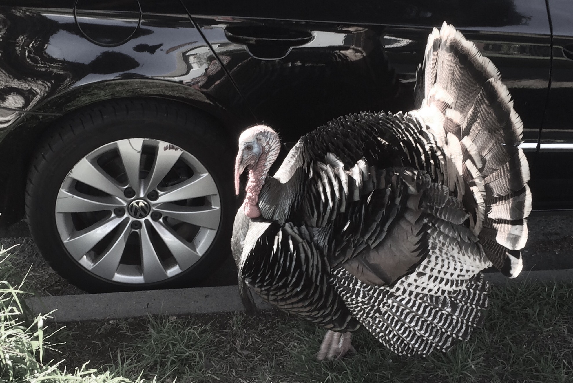 hehehe love the turkey checking himself out near the tire. Thanks for sharing