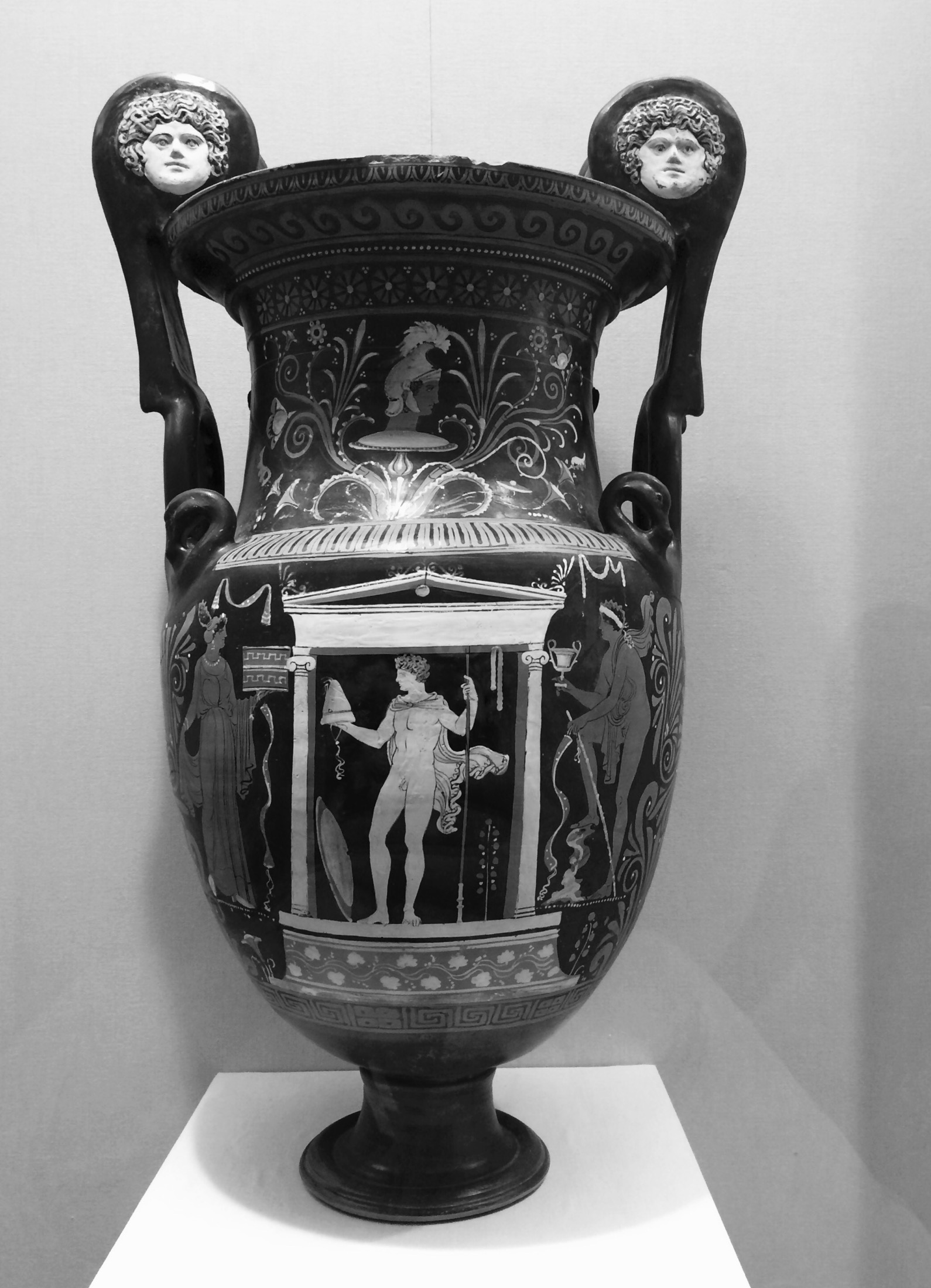 Figural urn is a style of vase or larger container where the basic urn shape, of either a classic amphora or a crucible style, is ornamented with figures. These may be attached to the main body, forming handles or simply extraneous decorations, or may be shown in relief on the body itself.