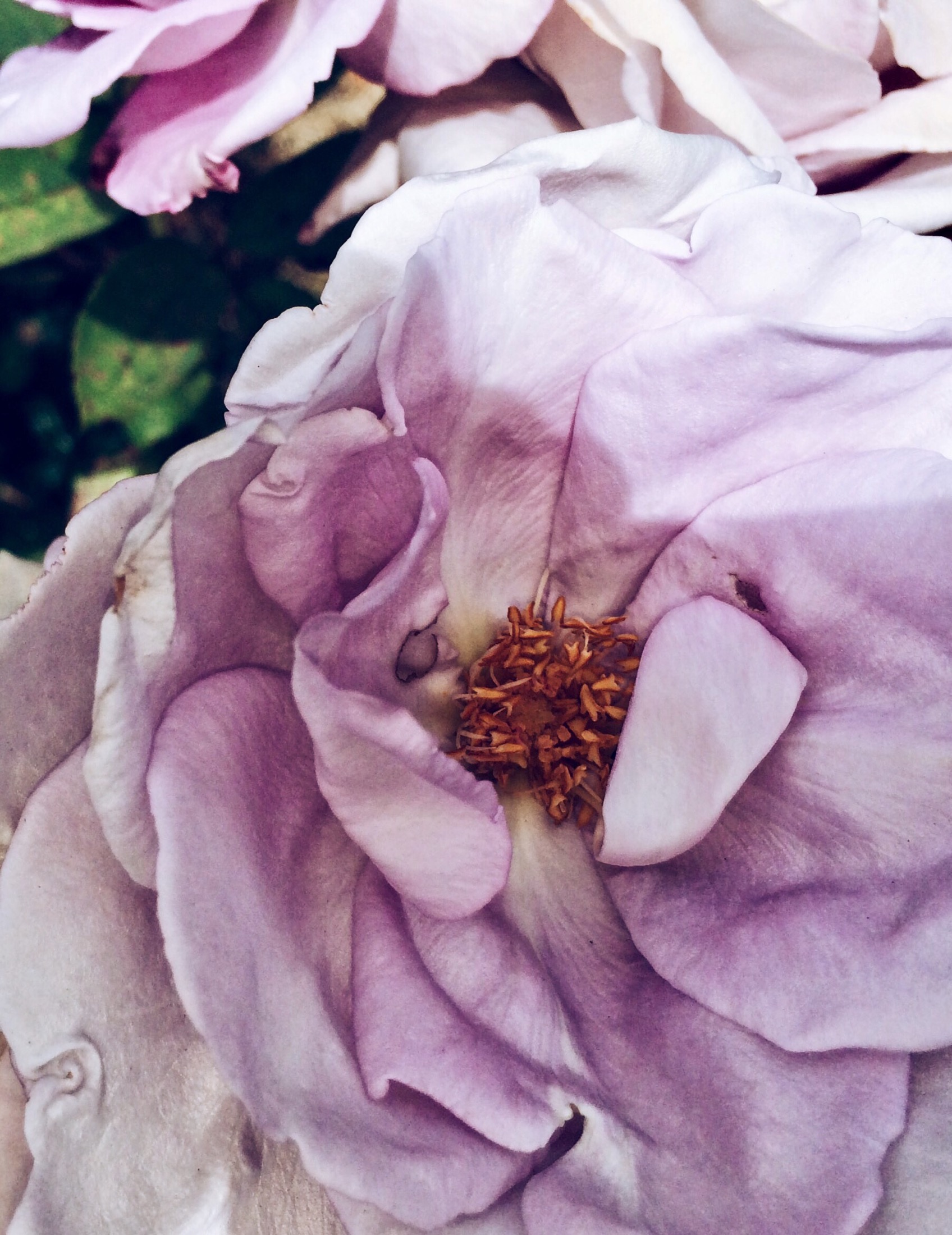 This rose bush has been in the neighbor’s yard for over 30 years, between the properties forgotten it seems. She keeps appearing a few weeks very spring.  The second photo I held my iPhone over the top and shot blindly to get the image of the elderly ruffled blossom, the ancient crone I could only see from my window across the street.