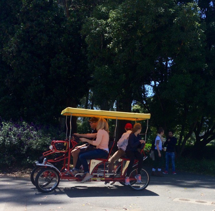 We were stopped at a stop sign in The Park long enough for me to get a few Which Way candids through the car window. I so wanted to get out and join them. Before this we passed a Purple building and Pride flags on Castro