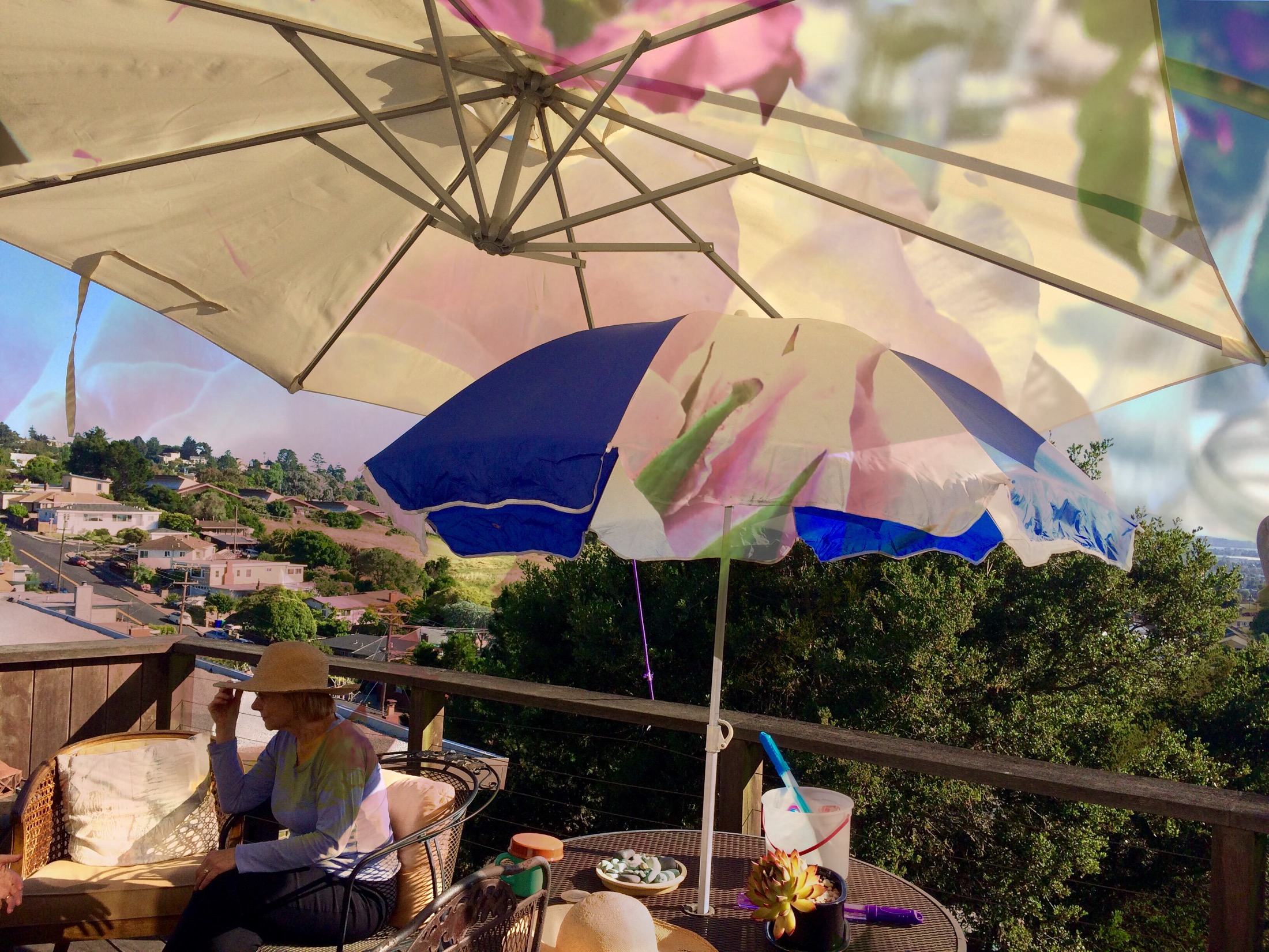 My friend, Lee, had just returned from France when I captured her in this thoughtful pose. I superimposed a layer of roses to create this dream scape.