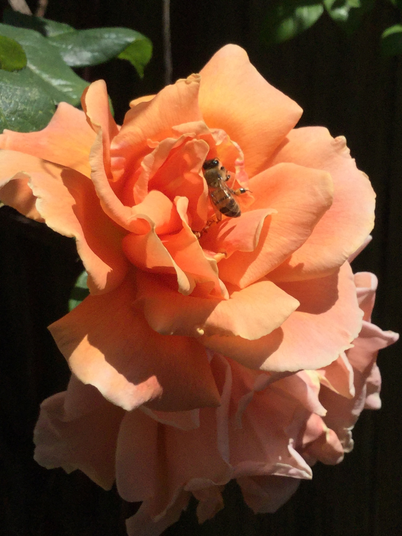 When the light makes my flowers glow I’m off like the dog after a squirrel. No amount of “sit stay” will stop me.  On this day I also came upon a busy bee who stayed around for a number of shots. This is my favorite.