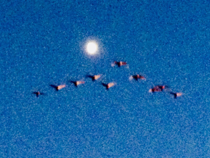 I was thrilled to see swans pass in front of the MOON iPhone 5 is not too good for bird photography.