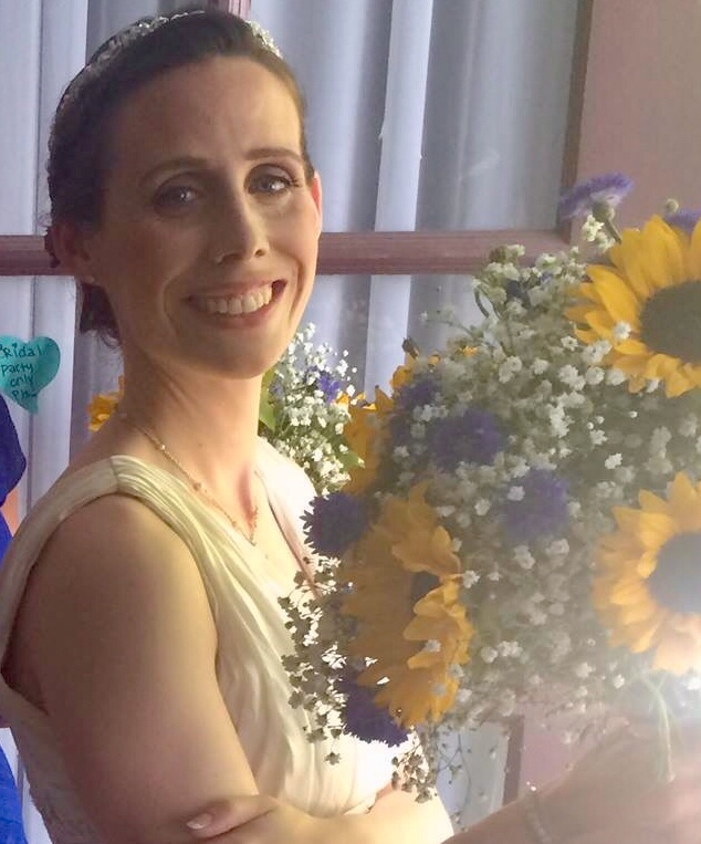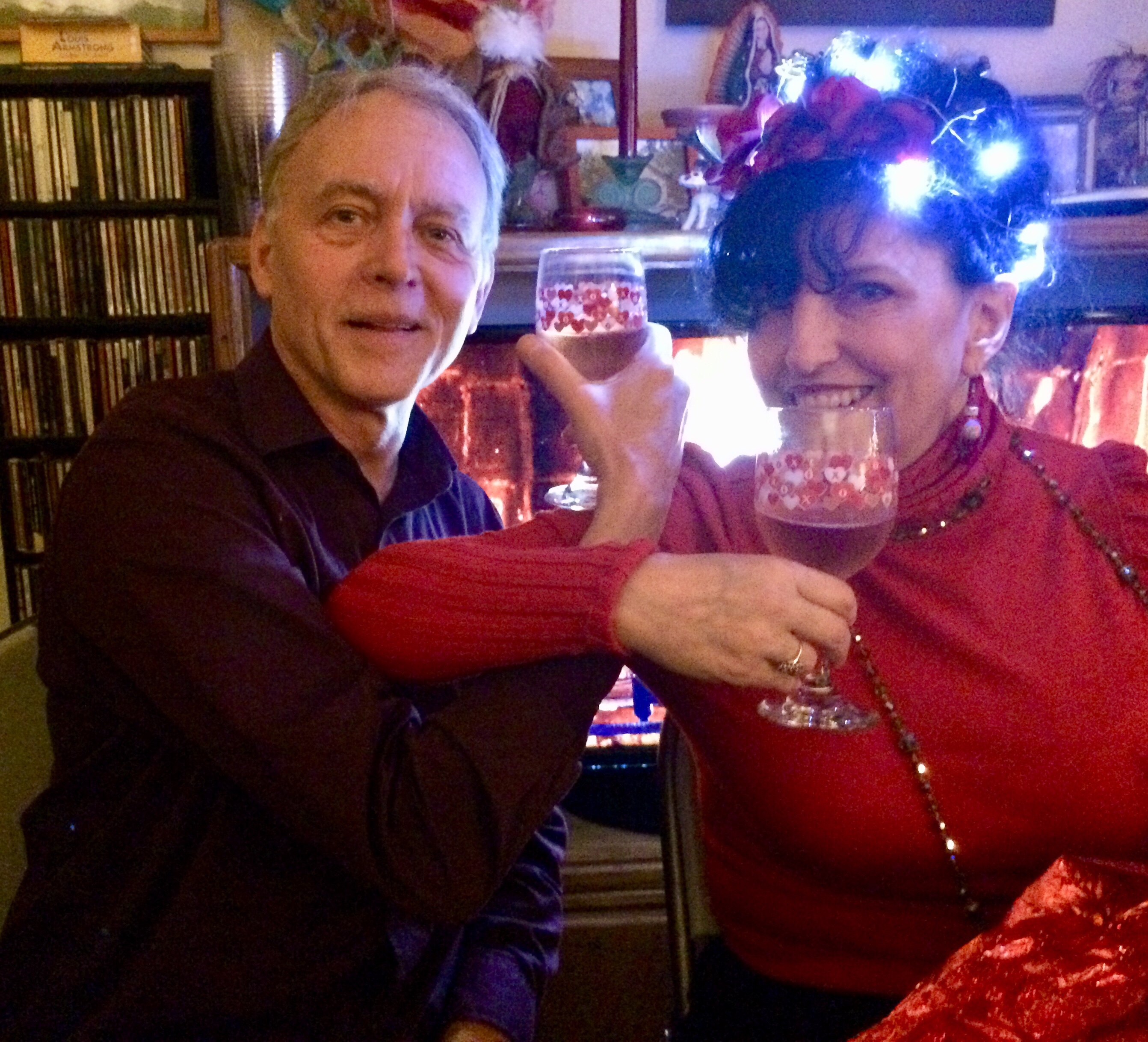 She got married on my birthday and we had a big party at my house. This is the one photo with both of them looking into the camera. Not so easy in the dark as the wine flowed!