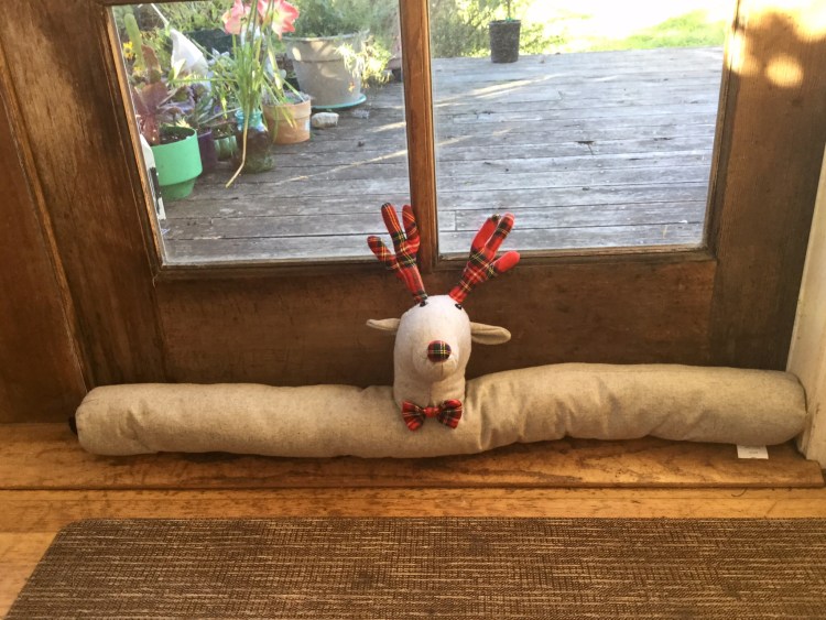 I really like your door guard, Carol. I just use rolled up old towels with rubber bands around them. They don’t look cute, but they do work and when winter’s over, I can use the towels for other things.