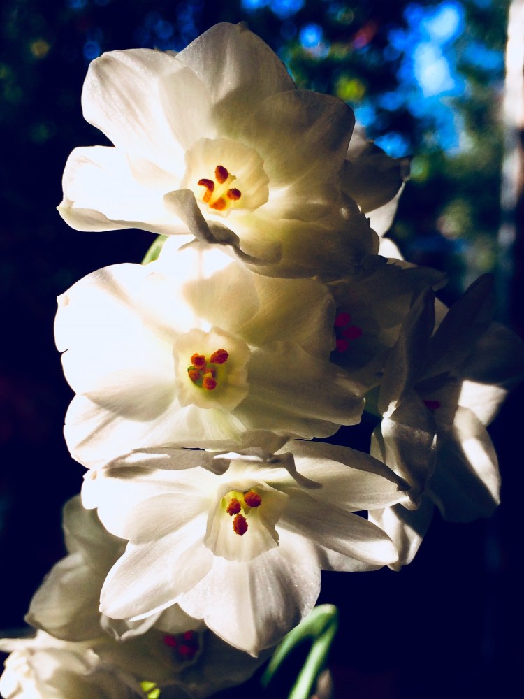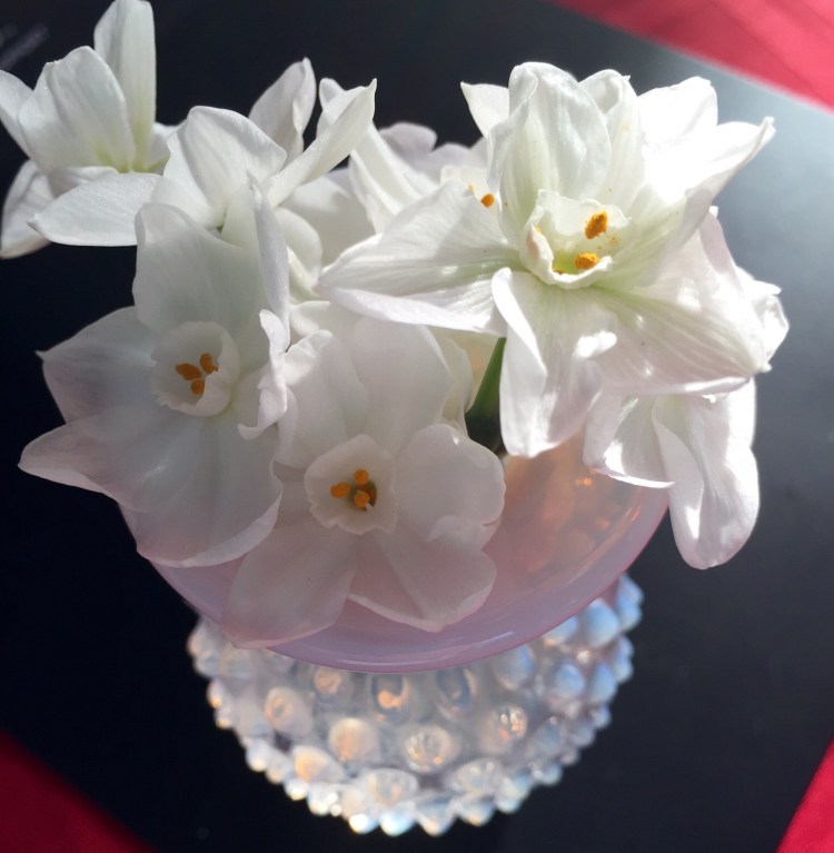 I couldn’t bring myself to write about Narcissism like the daily post asks today but I’m sure happy to share photos of the Paperwhite Narcissus I plant every Christmas. Like my friend at Anglowswiss says “where There’s flowers there’s hope” enjoy!