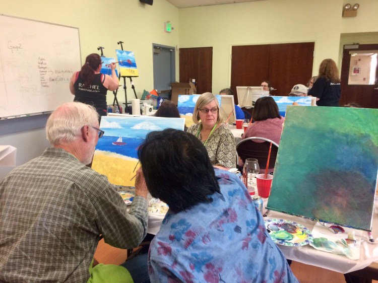 1. The class was a Hoot! Called brushes and Brew a pub had donated beer and it was all you could eat pizza and free flowing beer. It was a Senior Citizen Month event. You’re too young 😉