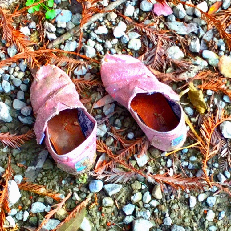 I imagine a mom yelling “where’s your shoes” when she and many kids get home from the park near a pond.