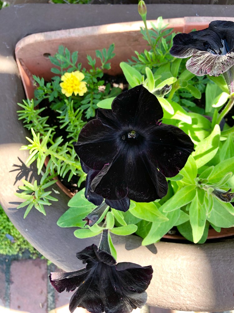 That’s quite an interesting flower bed! I’ve never seen a black petunia, but they’re beautiful!!!