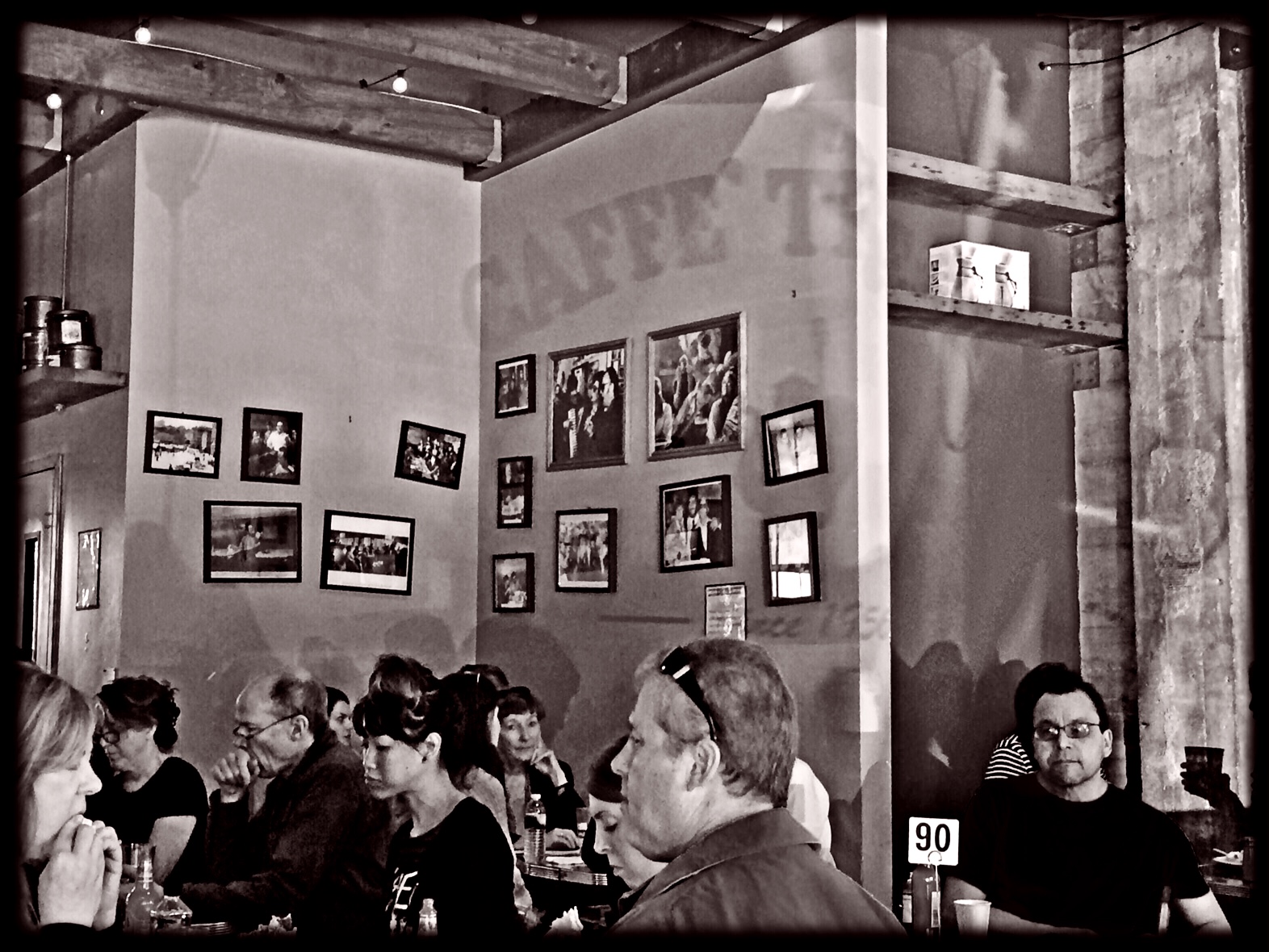 Here are 2 photographs of Cafee Trieste I took and edited inspired by his style of black and white photography.