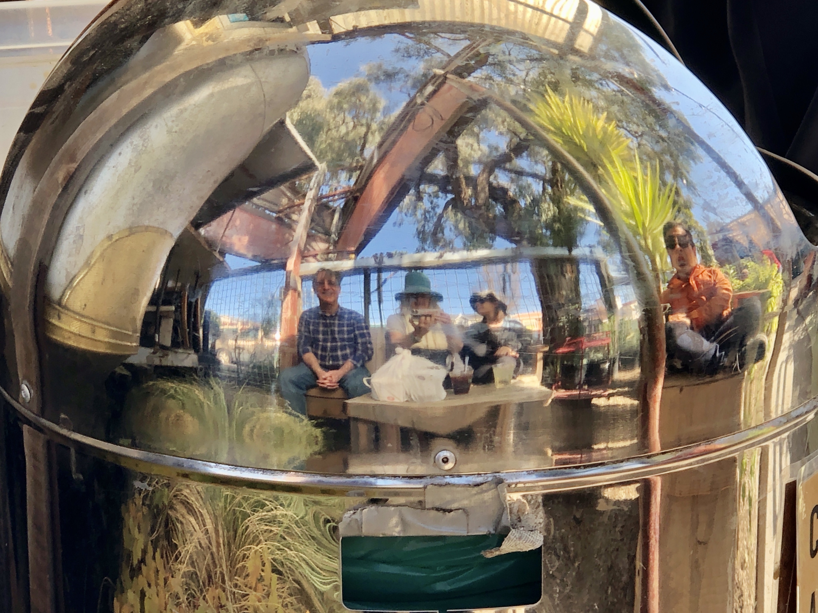 Seating was limited at the garden coffee shop so we couldn’t get a family selfie but I could see all of us in the shining recycling bin near-by. Thinking of Debbie Smyth’s Quote of the week I zoomed and framed us all up for an unusual fun family photo.
