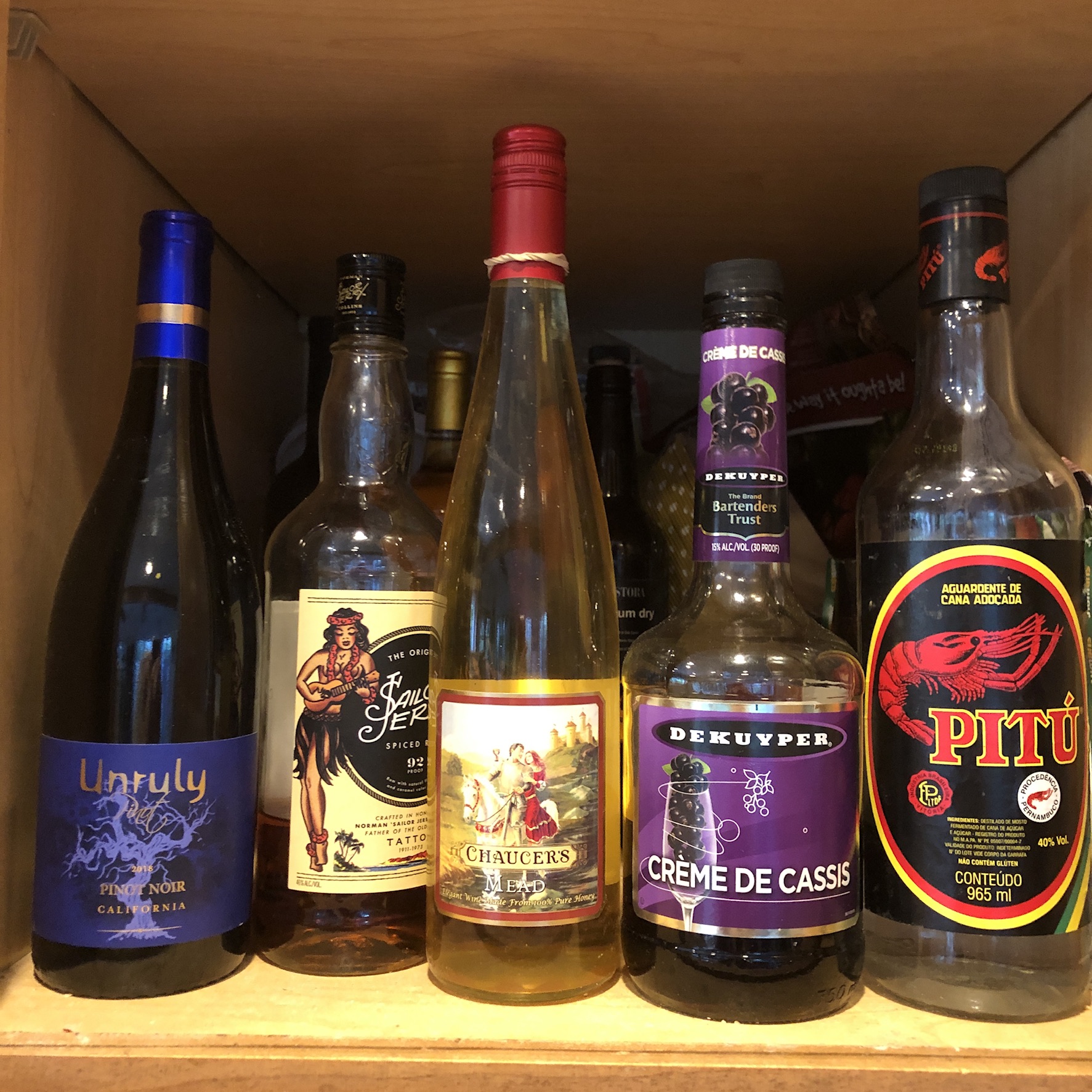 I understand Top Shelf to mean the best liquor in the bar. At my house these are the bottles hidden behind the cereal boxes in the cupboard. Some have been around for years. The Pitu is a very strong rum like liquor that a Student brought us from Brazil.
